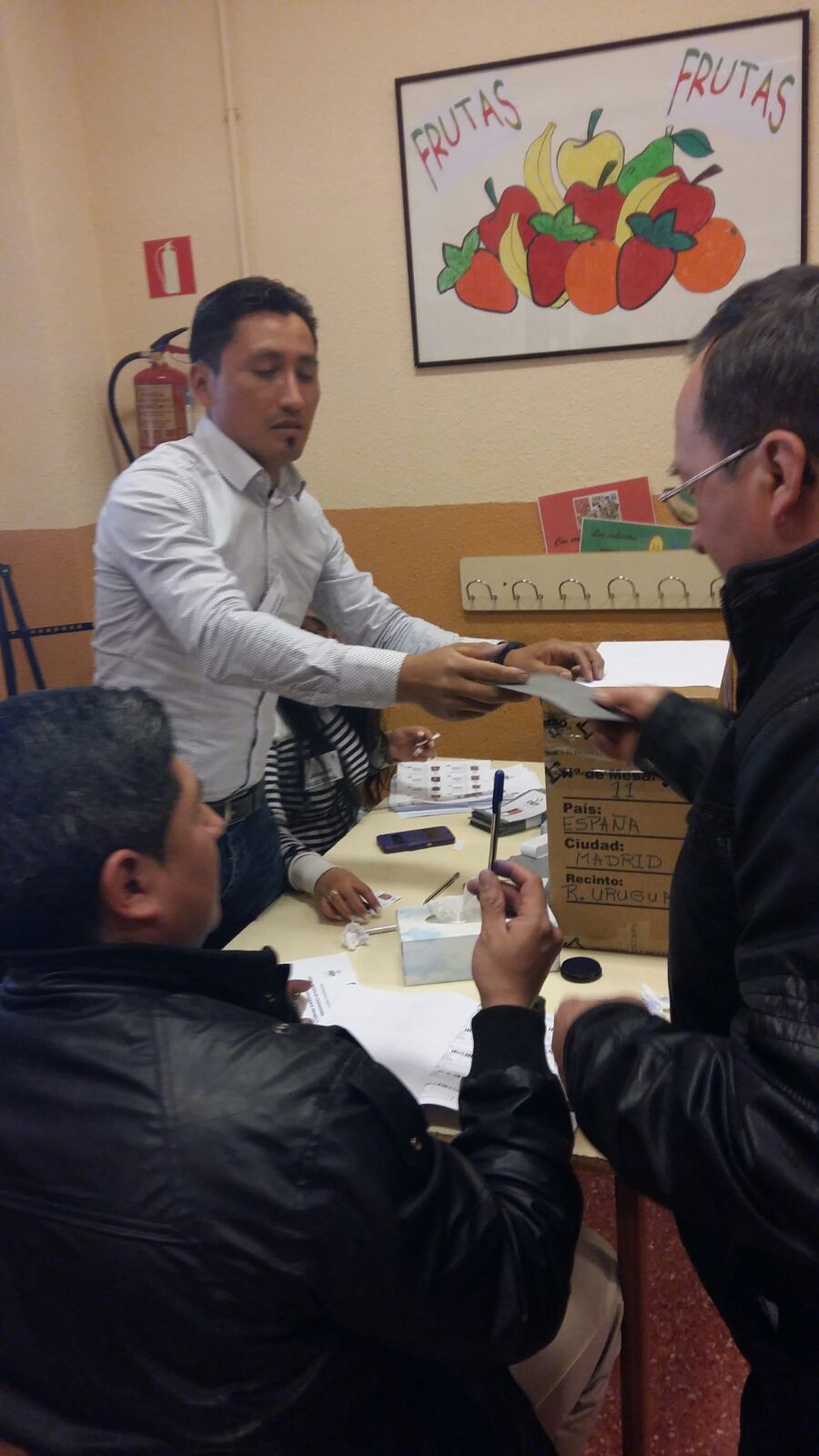 Madrid-Colegio Público República del Uruguay-Ciudadano recibe papeleta para votar