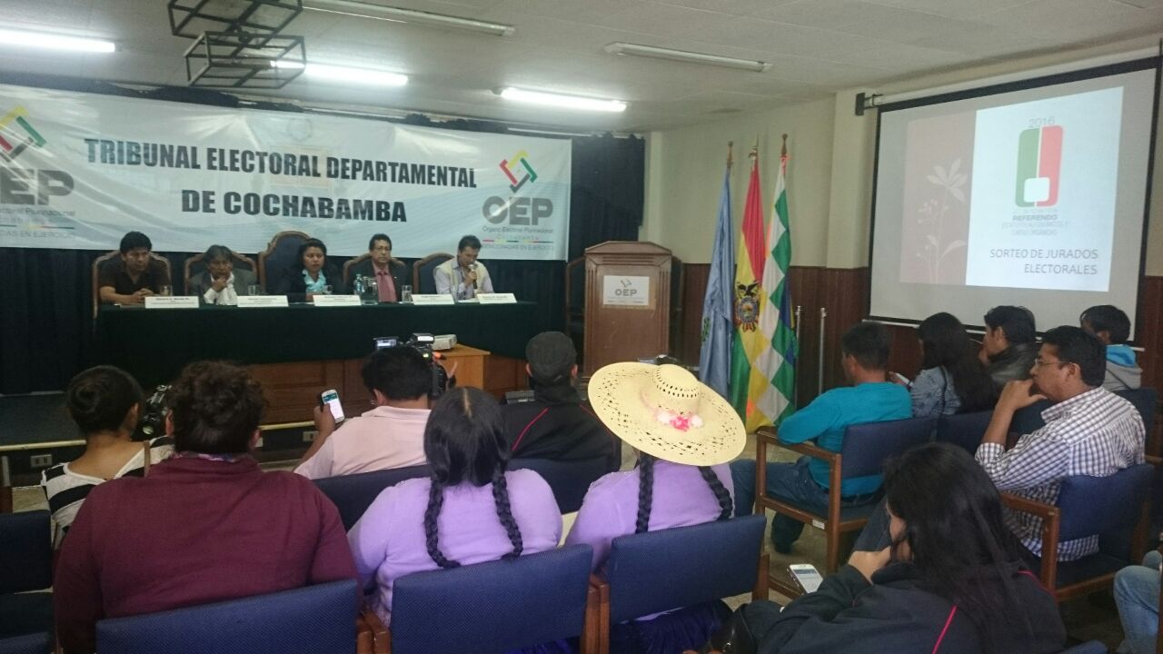 En Cochabamba fueron sorteados 1386 jurados para los municipios de Vinto, Arque, Totora y para el Territorio indígena de Raqaypampa; en Tarija, 2856 jurados para la provincia Gran Chaco.