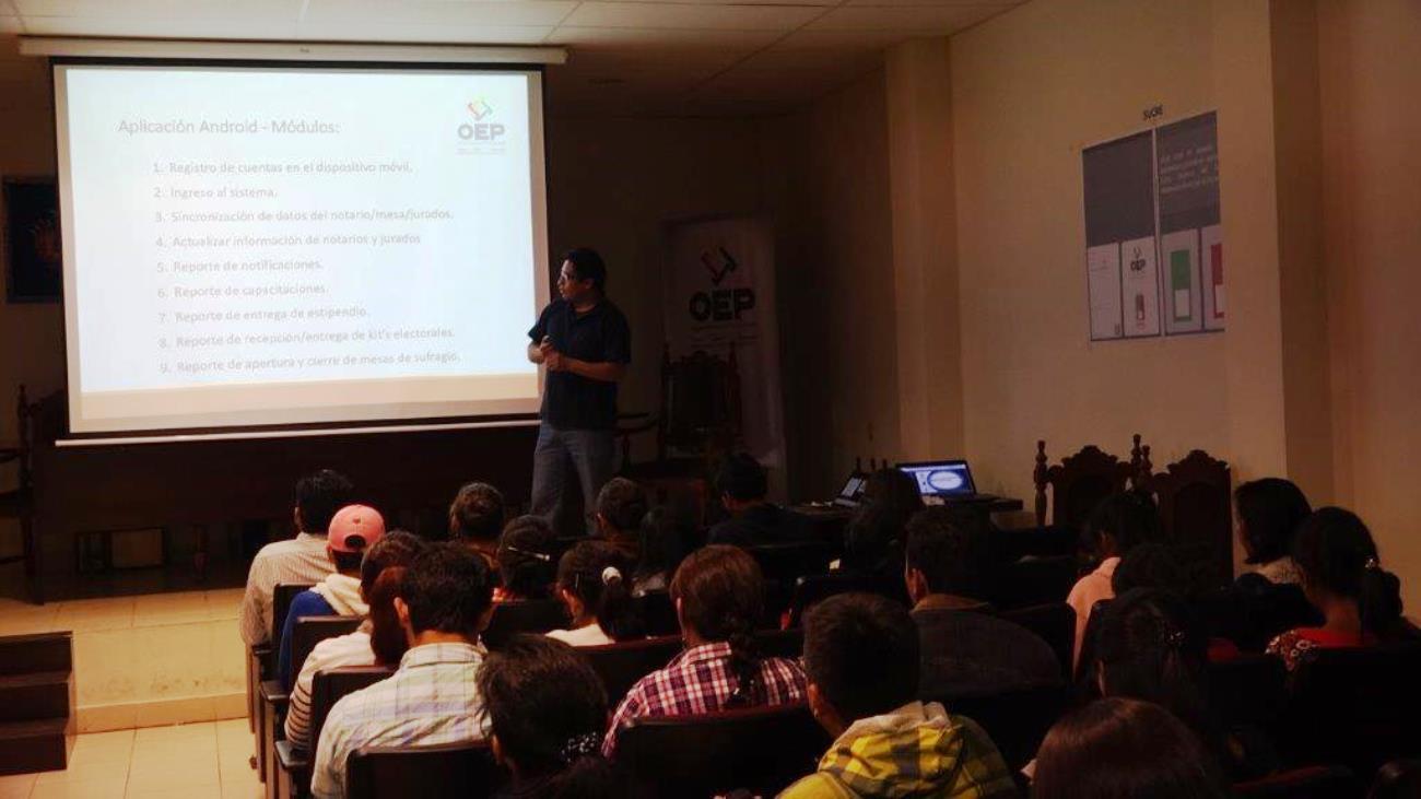 En los dos días en los que se realizó el taller, se desarrollaron contenidos como: la estructura institucional del OEP; la Democracia Intercultural, Democracia Directa y Participativa; el marco legal que rige en la consulta; las funciones y atribuciones de los jurados de mesas, guías electorales, policías y otros actores; y las faltas y sanciones, entre otros temas.
