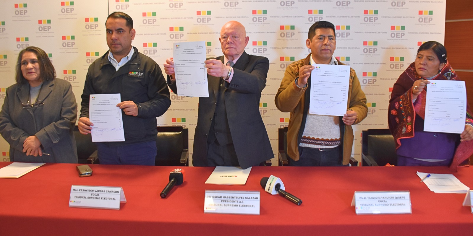 El acto fue presidido por el presidente del TSE, Óscar Hassenteufel, y contó con la participación de los vocales Nelly Arista, Tahuichi Tahuichi, Francisco Vargas y Nancy Gutiérrez.