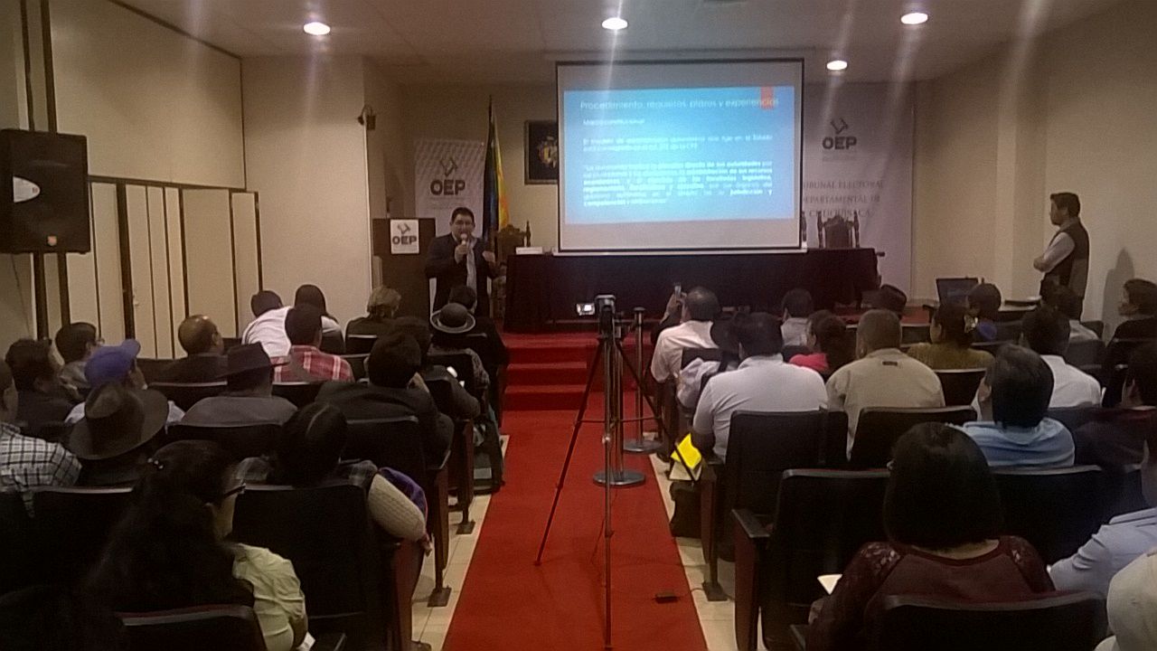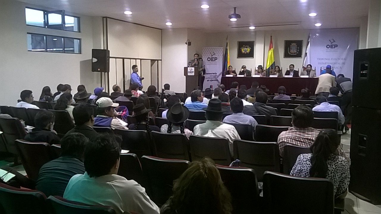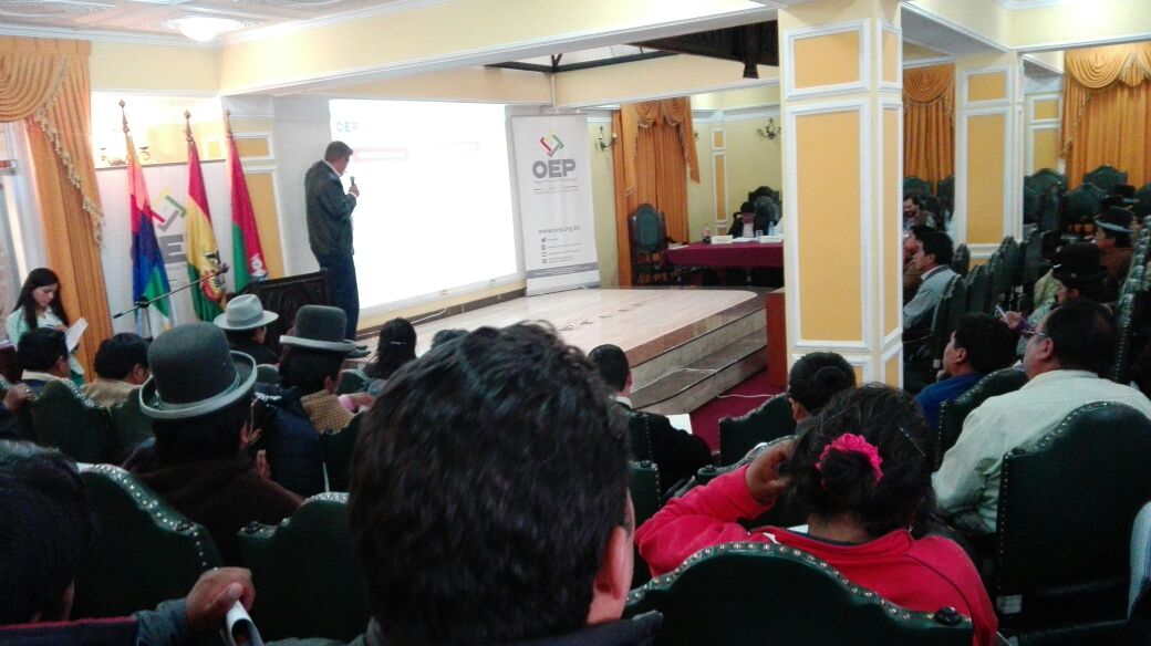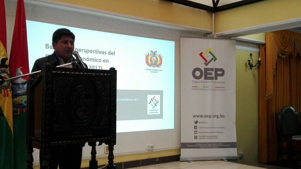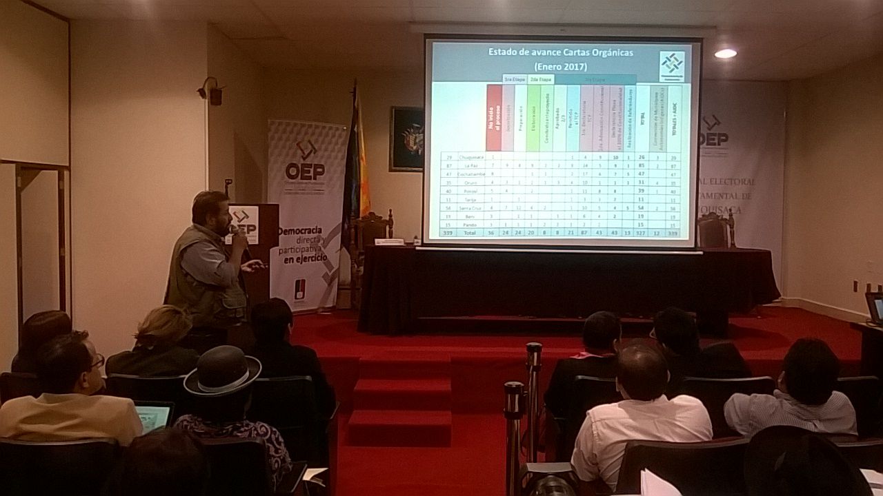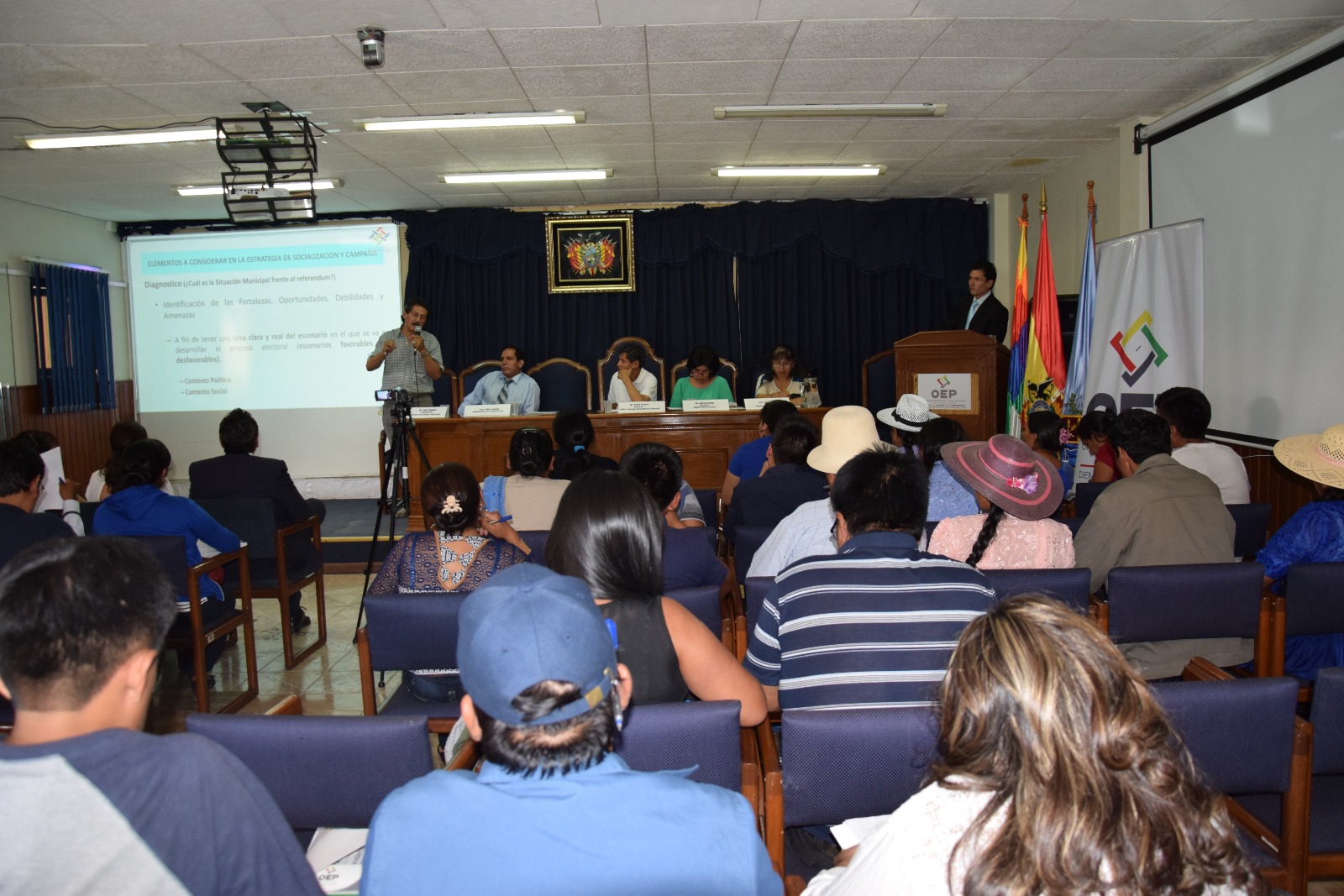Con la participación de alcaldes, concejales y otros representantes de 45 municipios de todo el país, el OEP junto a otras tres entidades del Estado desarrolló este lunes talleres simultáneos en cinco departamentos del país, para informar sobre los procedimiento para participar en el Referendo de Estatutos Autonómicos y Cartas Orgánicas 2017.