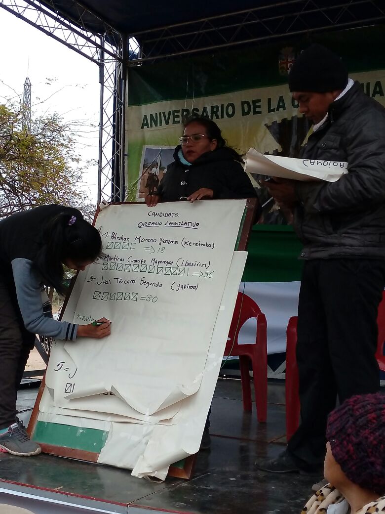 En Charagua Estación, después de alrededor de ocho horas de funcionamiento de las mesas de sufragio, las y los pobladores eligieron al frente Unidos por el Desarrollo de la Estación (UPDE) como las y los representantes para los tres órganos del Autogobierno de la Autonomía Indígena Guaraní Charagua Iyambae.