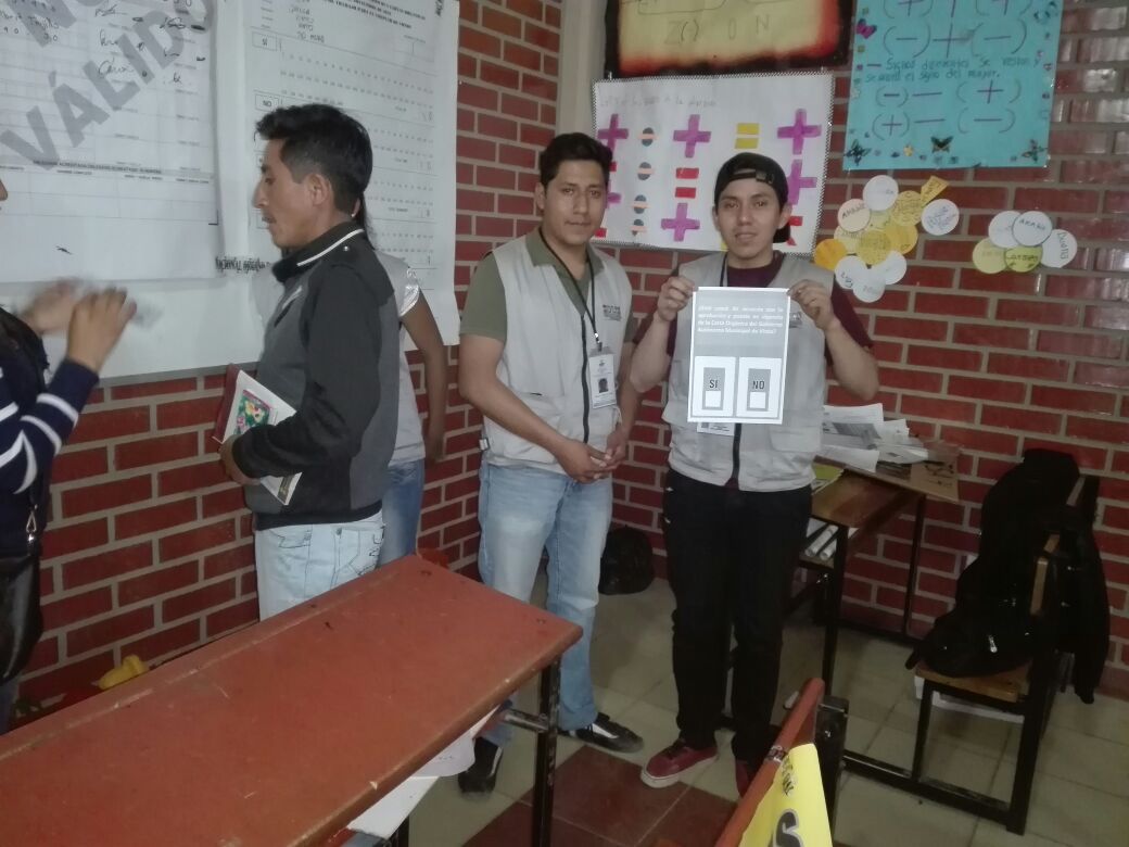 Los dos equipos de técnicos que realizan la capacitación iniciaron el trabajo en el área urbana del municipio, en la unidad educativa David Azarbe y núcleo escolar Simón Bolívar. Los técnicos se encargarán de impartir conocimientos sobre el procedimiento de votación, funciones y atribuciones de las y los jurados electorales y los notarios electorales durante el día de la consulta.