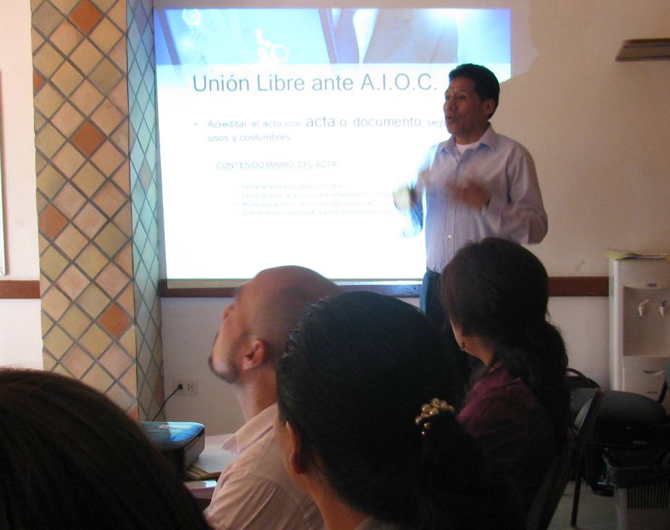 Un técnico del Servicio de Registro Cívico (SERECI), encargado de explicar los alcances del Reglamento, mencionó que las autoridades de los pueblos indígenas podrán registrar las uniones libres, para luego remitir el acta de reconocimiento de la unión libre por usos y costumbres al SERECI, en cumplimiento de la normativa vigente.