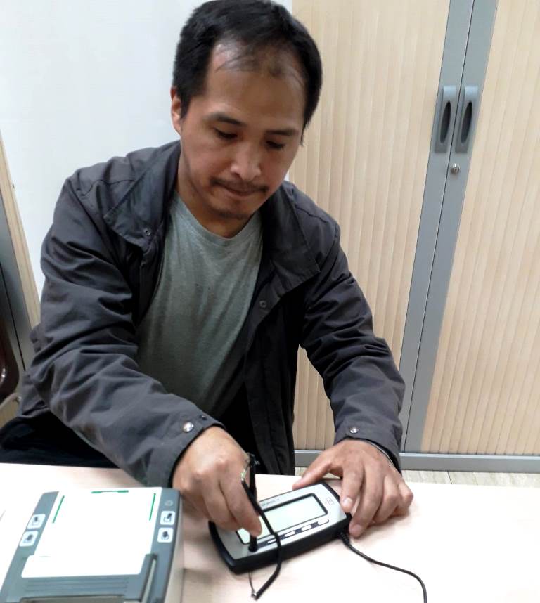 * Daniel Cayo durante el proceso de recolección de las huellas dactilares para el empadronamiento.