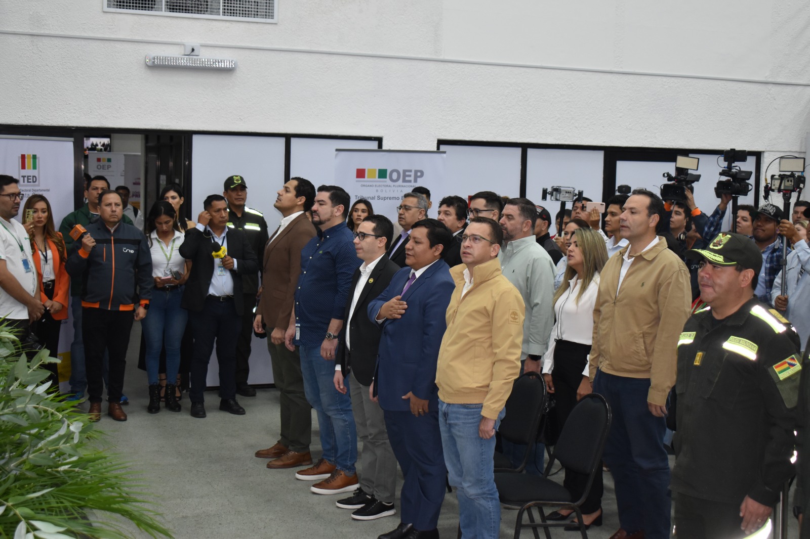 Del acto inaugural participaron el presidente del Tribunal Supremo de Justicia (TSJ), Romer Saucedo; el fiscal general del Estado, Roger Mariaca; el presidente del Consejo de la Magistratura, Manuel Baptista; el presidente de la Asamblea Legislativa Departamental, Antonio Talamás, el presidente del Tribunal Departamental de Justicia, Aldo Quezada; el fiscal departamental, Alberto Ceballos, el comandante de la Policía Departamental, Raúl Rojas; y la representante de la Defensoría del Pueblo, Sheila Gómez. Así como representantes del Comité Cívico pro Santa Cruz, el Comité Cívico Femenino, la Cámara Agropecuaria del Oriente (CAO), la Cooperativa Rural de Electrificación (CRE), la Universidad Autónoma Gabriel René Moreno (UAGRM) y miembros de las misiones de observación electoral de la Unión Interamericana de Organismos Electorales (Uniore), el Centro de Asesoría y Promoción Electoral (Capel), Asociación de Magistradas Electorales de las Américas (AMEA) y el Consejo de Expertos Electorales de Latinoamérica (Ceela).
