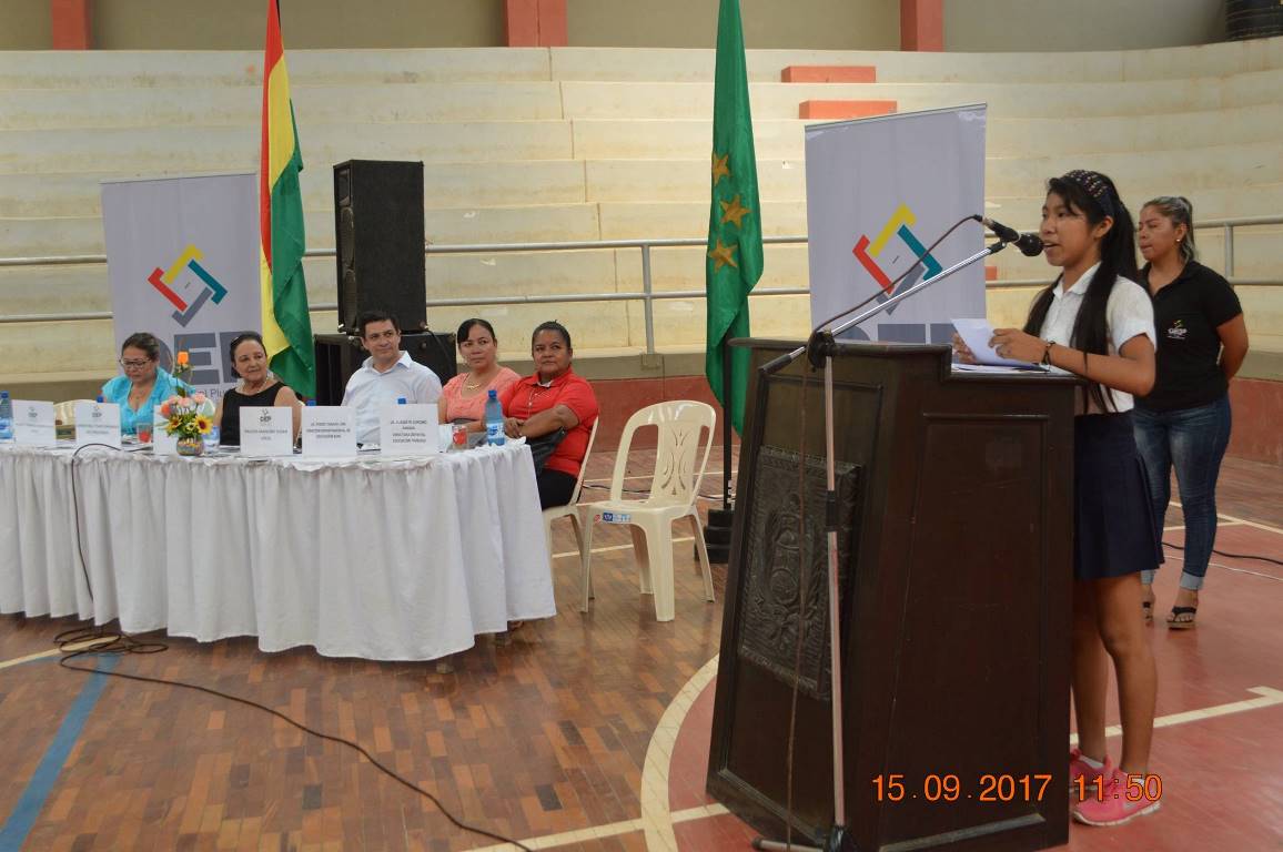 El presidente del TED Beni, Rodolfo Coímbra, manifestó que esta actividad es el resultado de la permanente coordinación interinstitucional que existe desde el 2013 con la Dirección Departamental de Educación y las direcciones distritales de educación, que permitieron ampliar los espacios de información y capacitación con las/os estudiantes sobre las diferentes etapas de un proceso electoral, información que les sirvió para la conformación de sus gobiernos estudiantiles.