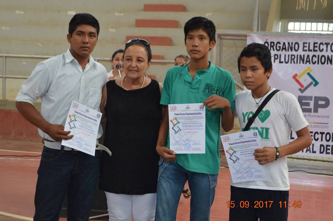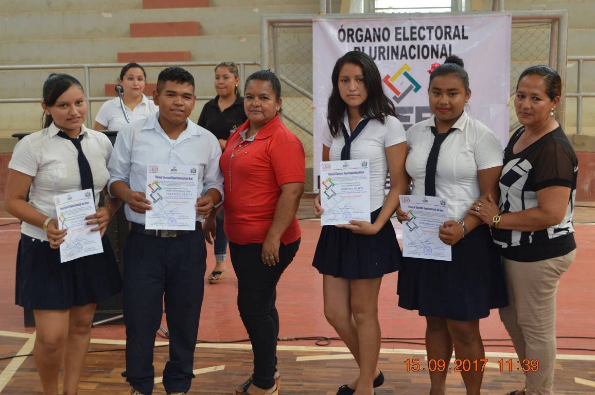 Las 21 unidades educativas eligieron a sus autoridades entre marzo y abril de este año, con el apoyo y asesoramiento de las/os técnicos del TED Beni y de sus maestros: desde la conformación de sus tribunales electorales estudiantiles, la elaboración y publicación de la convocatoria y calendario electoral, la capacitación a las instancias involucradas como ser directores, maestros del área de Ciencias Sociales, candidatas/os y jurados electorales, diseño de materiales electorales, supervisión del día “D”, recepción y revisión de informes finales, elaboración y entrega de credenciales.