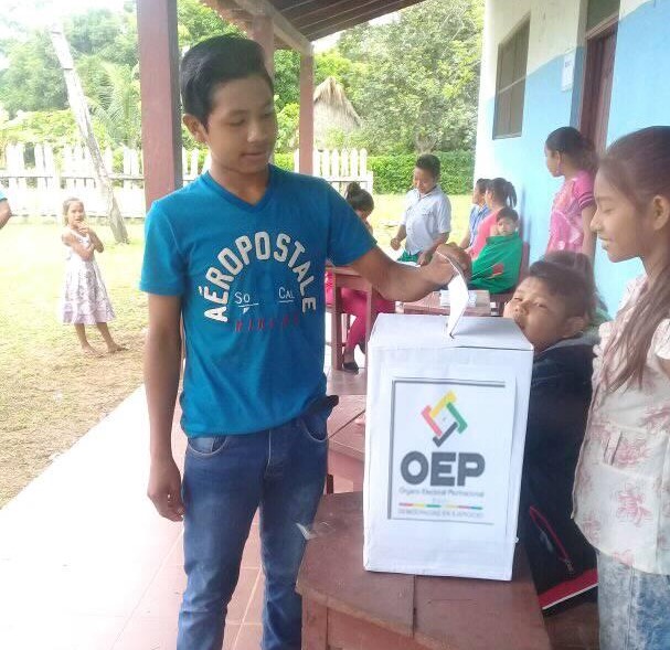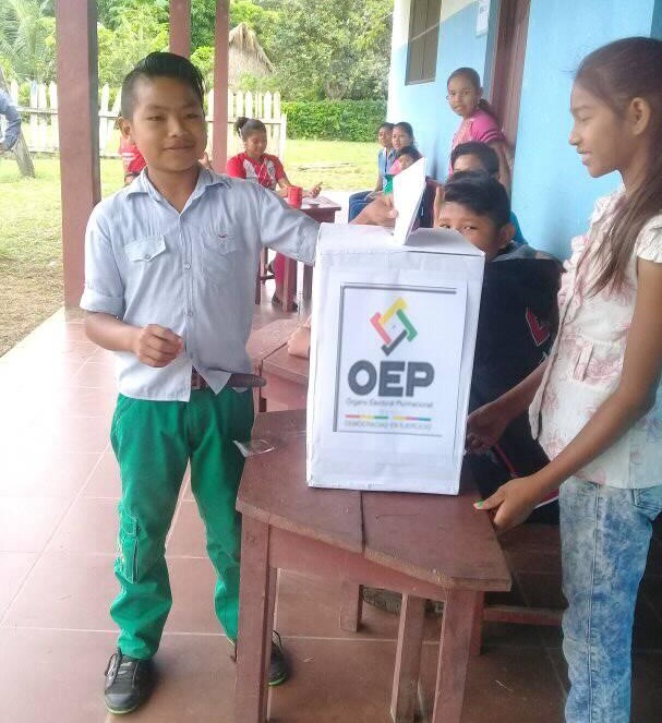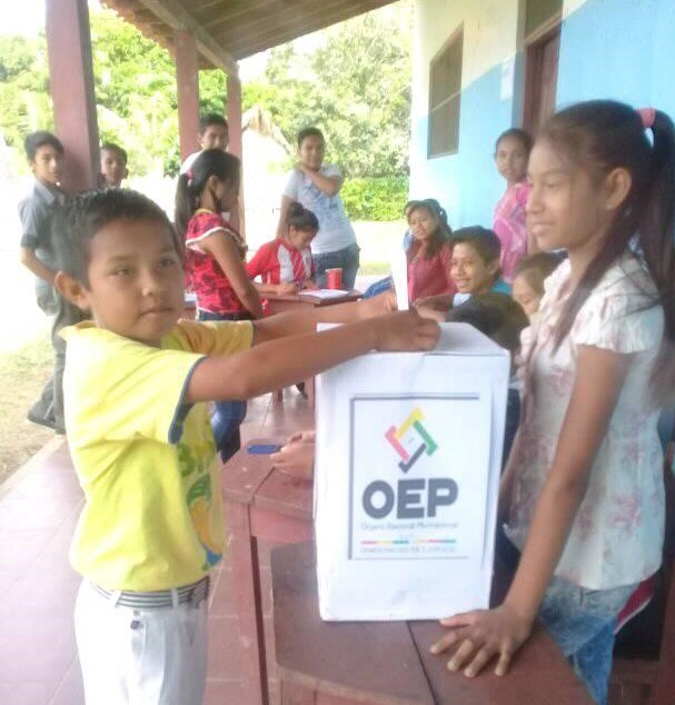 Las y los más de 70 estudiantes de la unidad educativa Mercedes del Apere, en la comunidad del mismo nombre en el municipio de San Ignacio de Moxos, en Beni, eligieron a la estudiante Ericka Caumol Guarena como presidenta de su gobierno estudiantil para la gestión 2018.