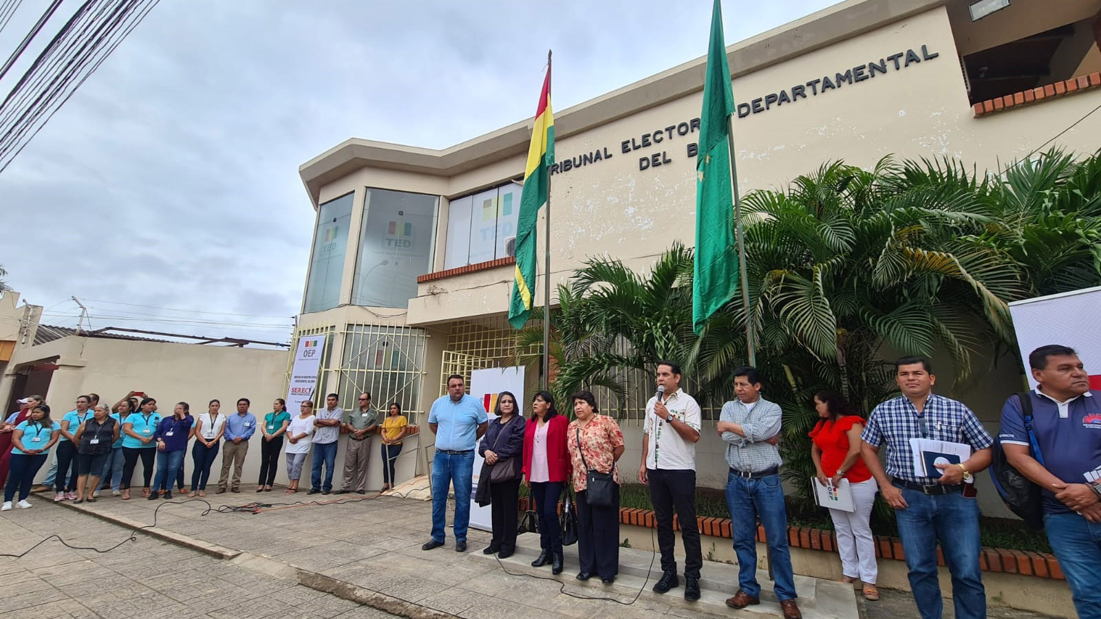 En Trinidad, departamento del Beni, autoridades del Tribunal Supremo Electoral (TSE) inauguraron la jornada electoral estudiantil en la que niñas, niños y jóvenes de 419 unidades educativas elegirán a sus gobiernos estudiantiles, en ejercicio de la democracia intercultural y sus derechos políticos.