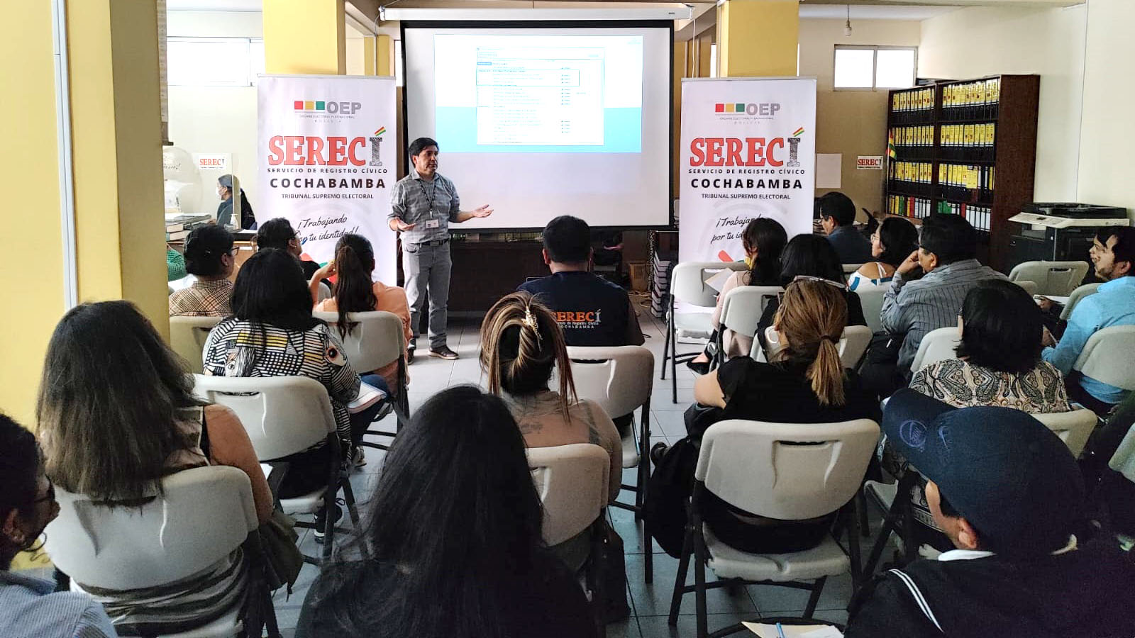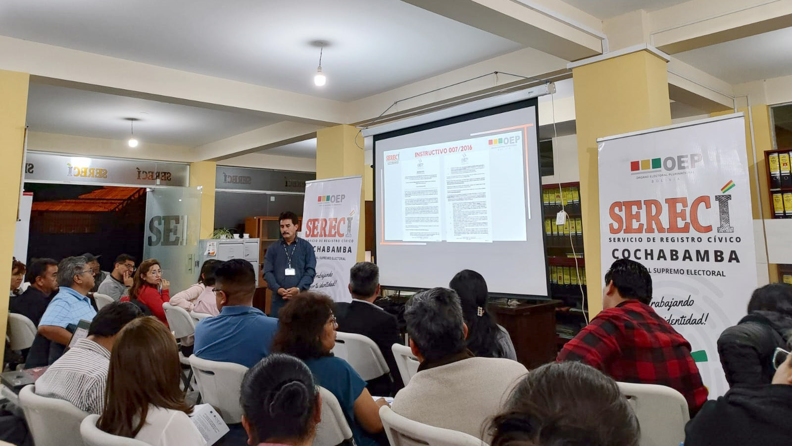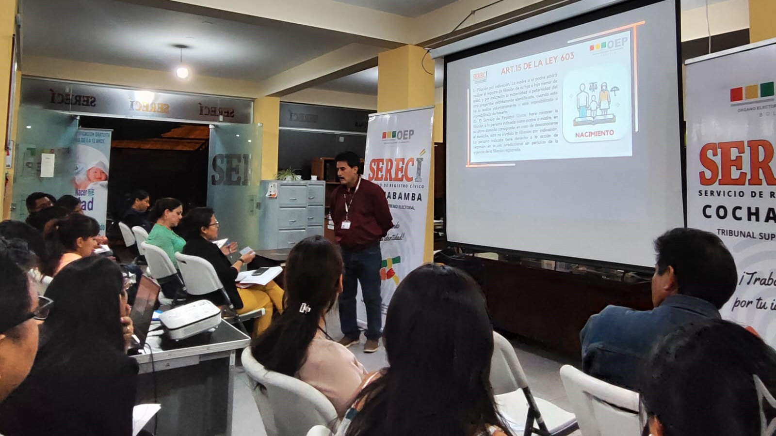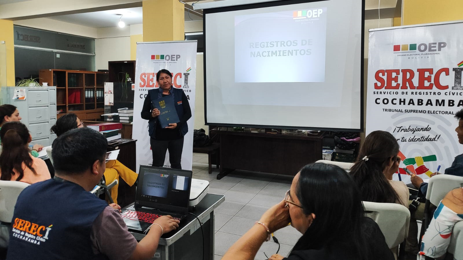 El Servicio de Registro Cívico (Serecí) de Cochabamba dispuso reforzar las capacidades de 132 Oficiales de Registro Civil (ORC) del departamento, el 19 y 20 de septiembre, con la finalidad de unificar criterios y procedimientos en el servicio de inscripción de nacimientos, matrimonios y defunciones que solicitan las y los ciudadanos.