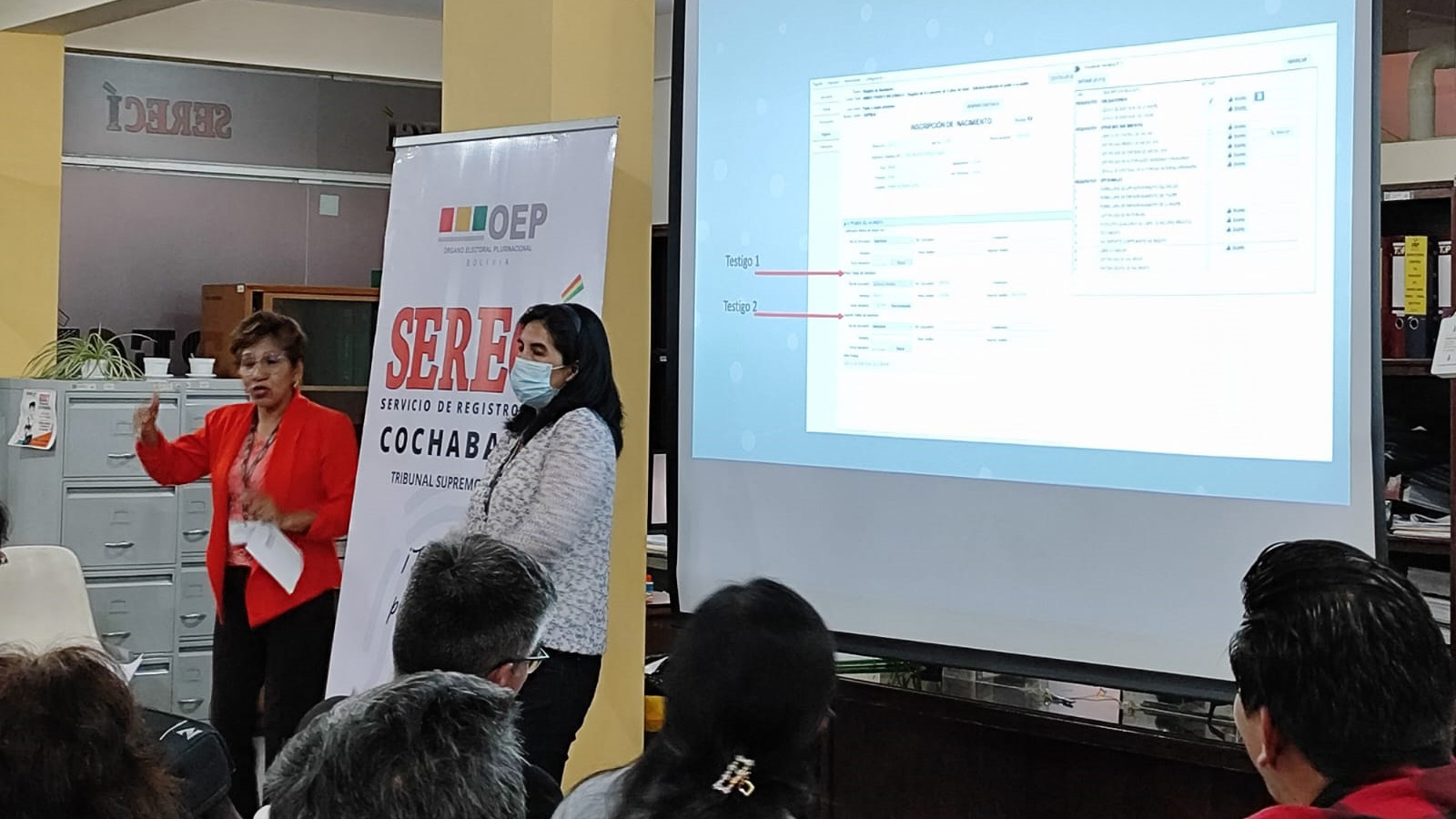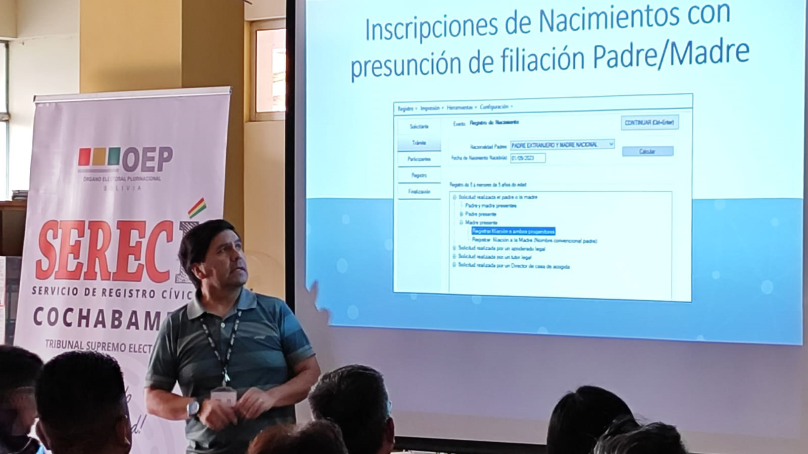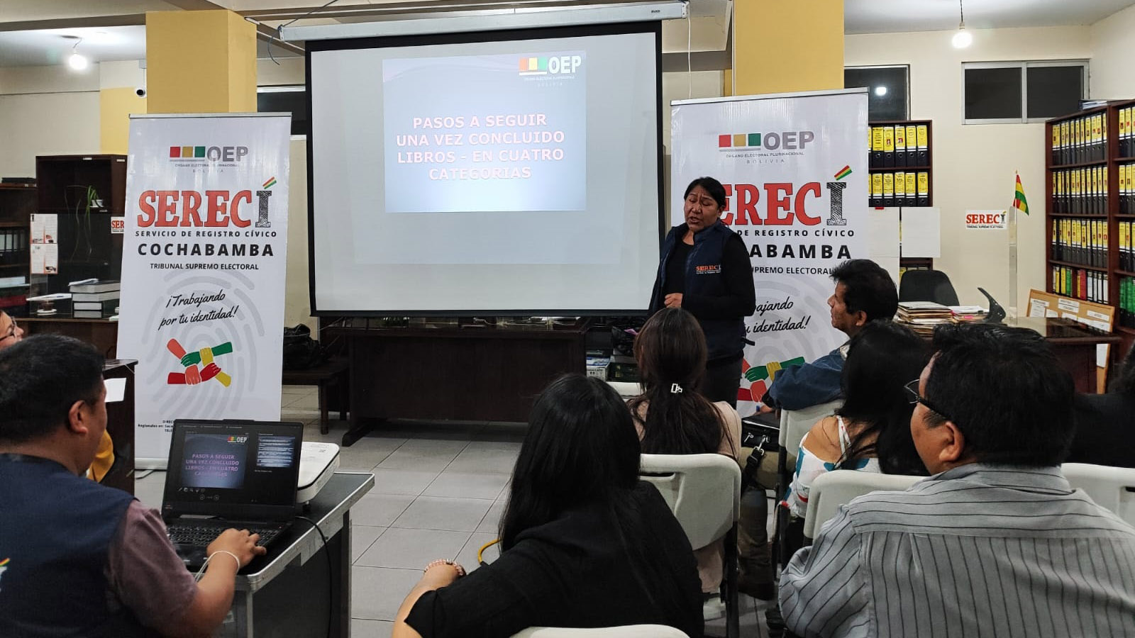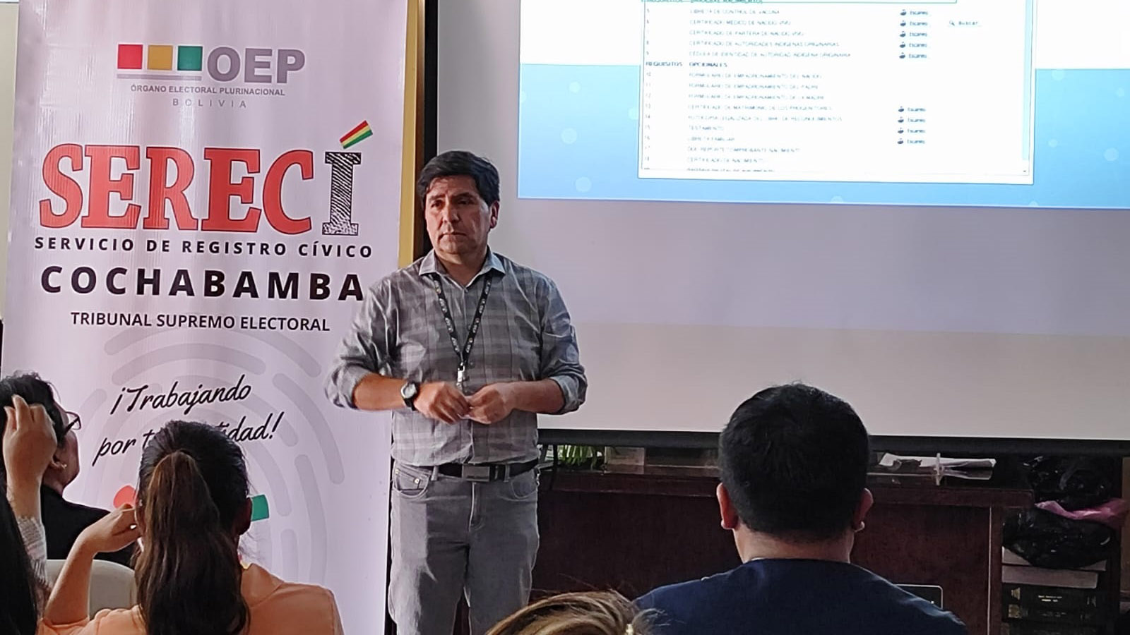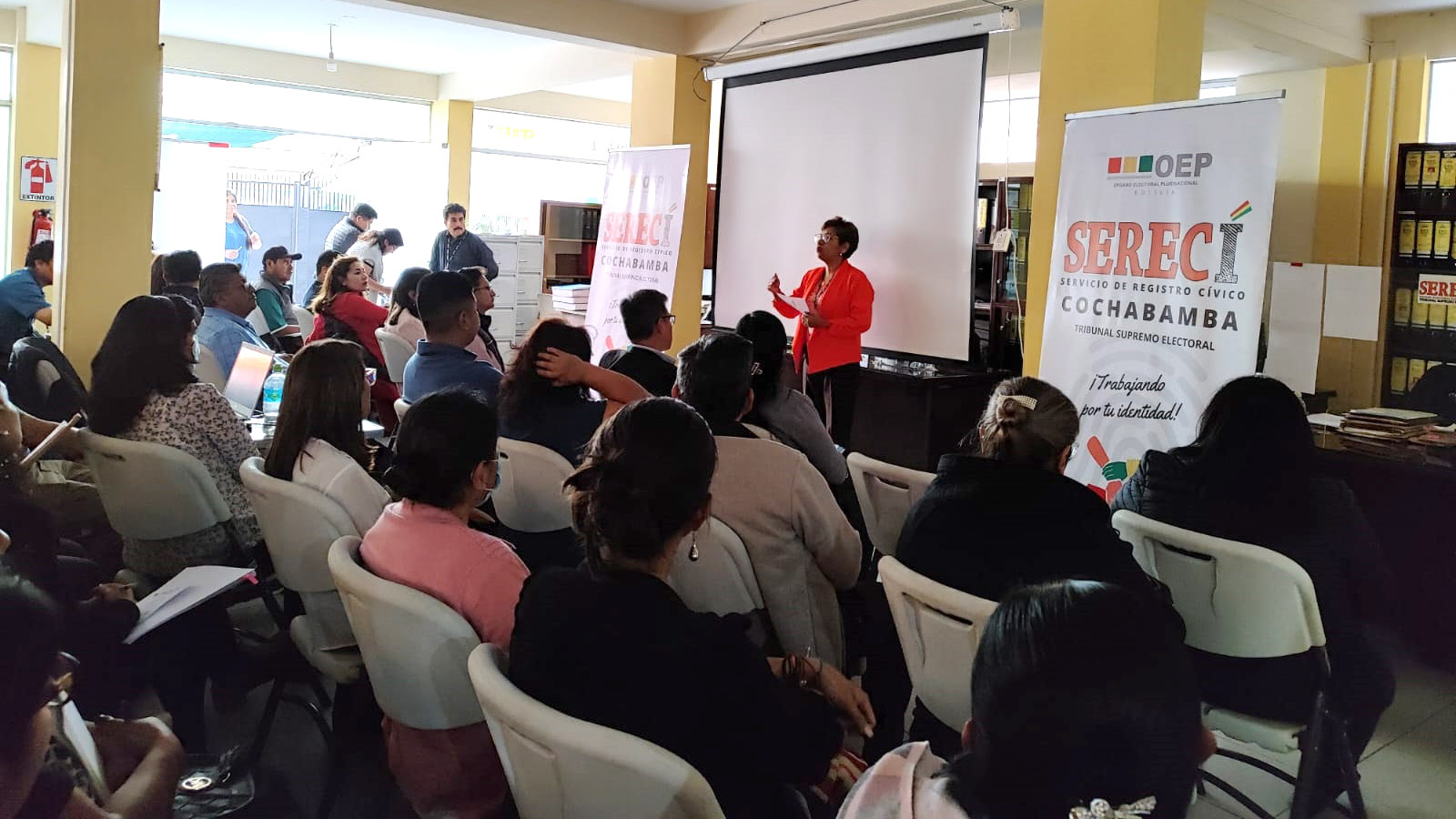 El Servicio de Registro Cívico (Serecí) de Cochabamba dispuso reforzar las capacidades de 132 Oficiales de Registro Civil (ORC) del departamento, el 19 y 20 de septiembre, con la finalidad de unificar criterios y procedimientos en el servicio de inscripción de nacimientos, matrimonios y defunciones que solicitan las y los ciudadanos.