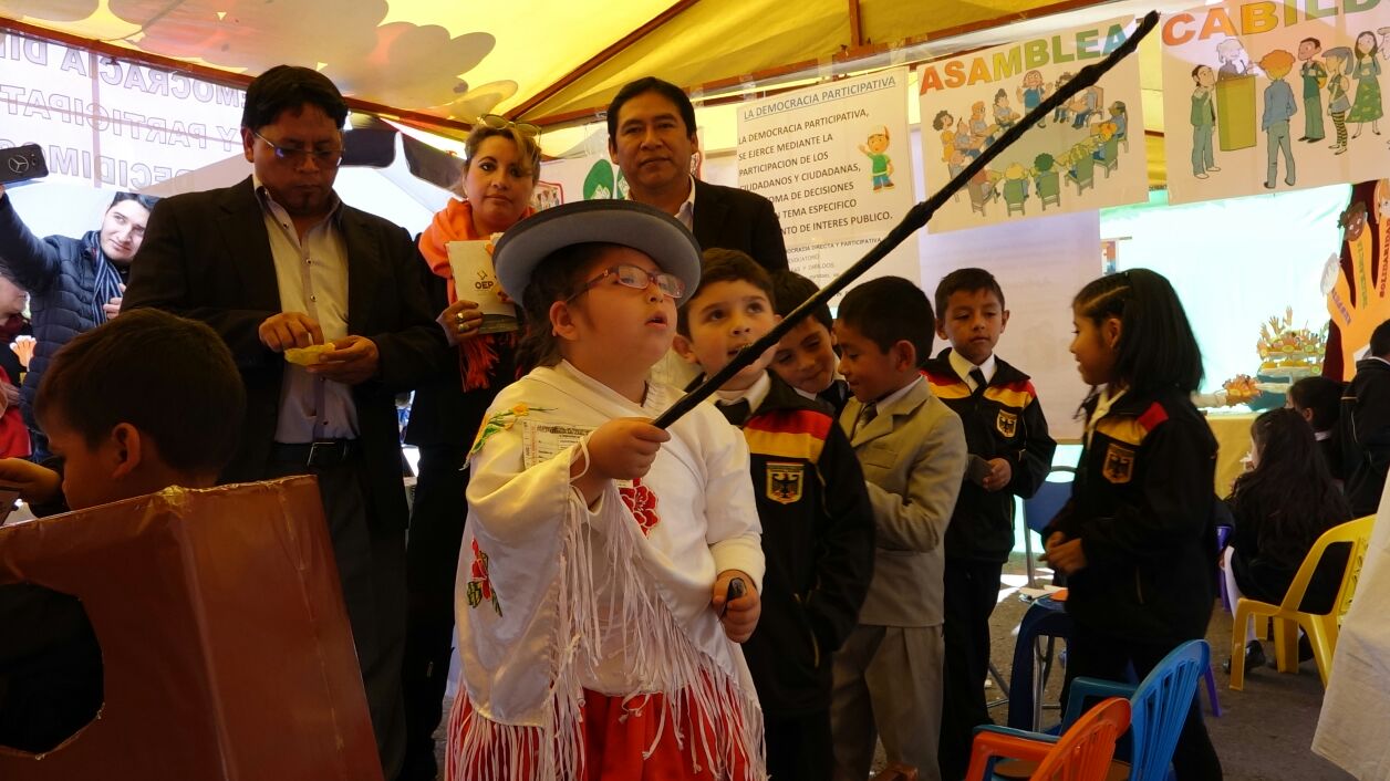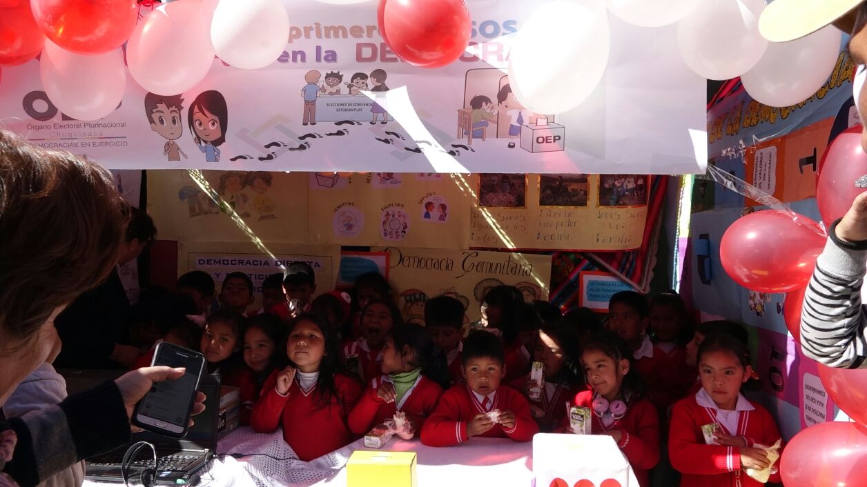 Para la realización de esta feria, las y los niños fueron capacitados previamente sobre conceptos y prácticas ejercidas en la Democracia Intercultural, a través de videos didácticos y juegos que apoyaron este proceso de aprendizaje.