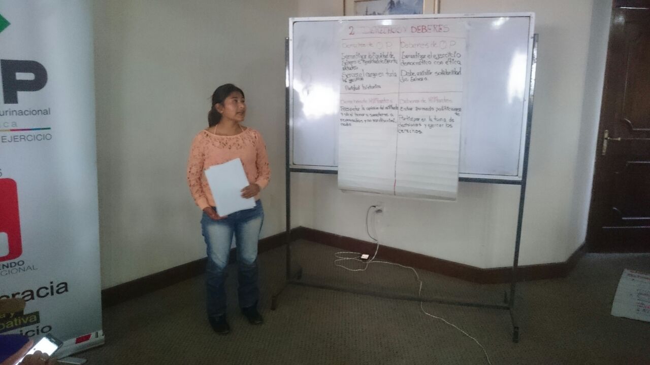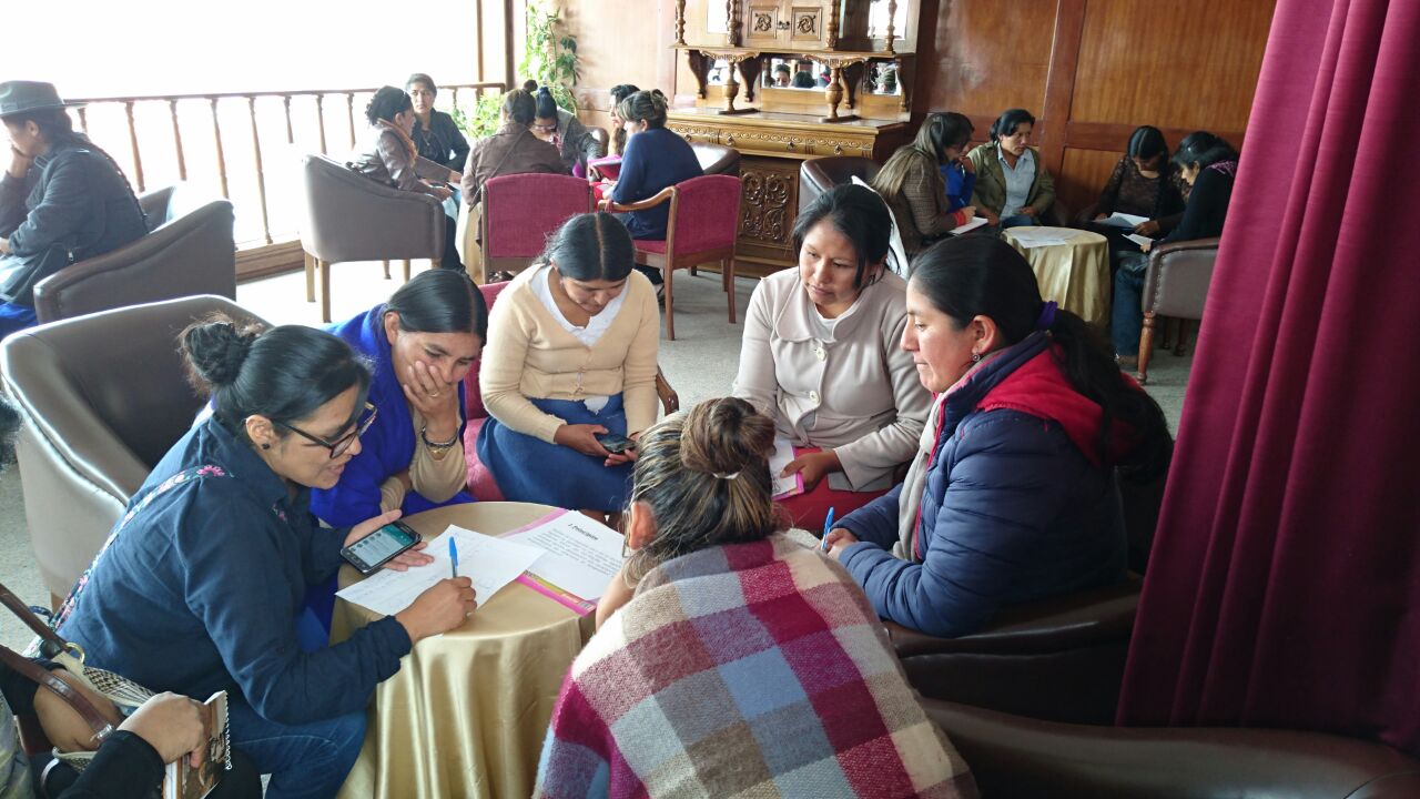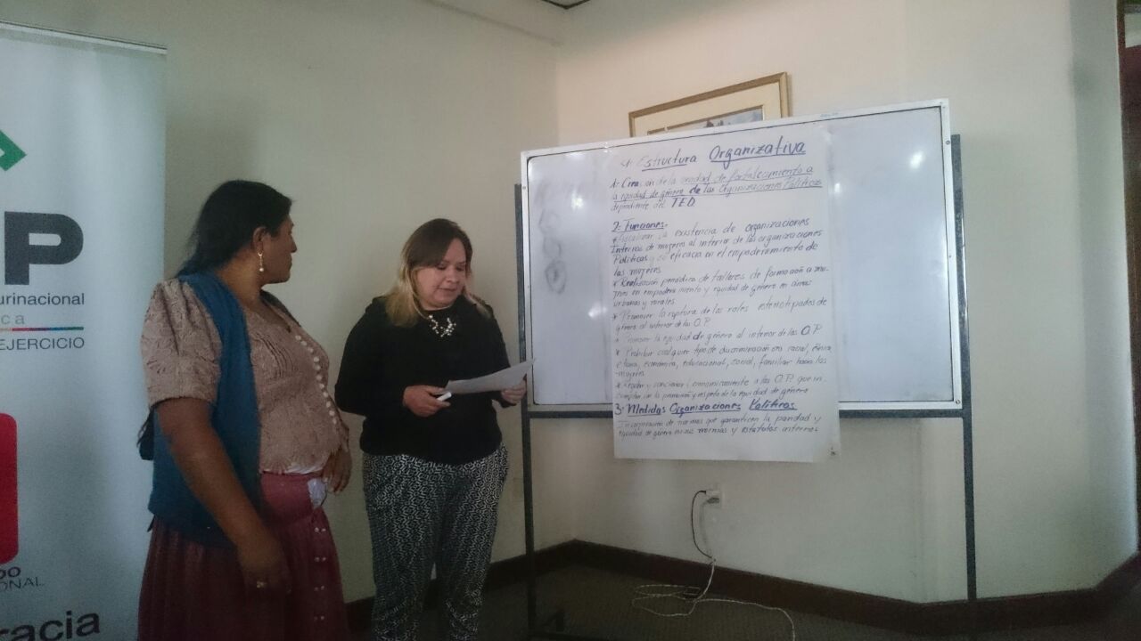 Las 70 mujeres, entre representantes de organizaciones políticas, autoridades electas a nivel departamental y municipal, indígenas originaria campesinas y mujeres de organizaciones sociales y activistas, fueron convocadas por el centro Juana Azurduy, con apoyo del Tribunal Electoral Departamental (TED) de Chuquisaca, como parte del Órgano Electoral Plurinacional (OEP), la Coordinadora de la Mujer y ONU Mujeres a fin de recoger propuestas desde las mujeres para elaborar el proyecto de Ley de Organizaciones Políticas.
