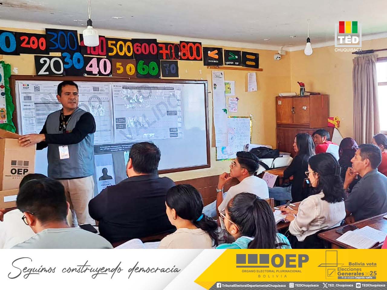 La capacitación de jurados electorales comenzó con una amplia participación en Chuquisaca, rumbo a la segunda vuelta de las Elecciones Generales 2025.