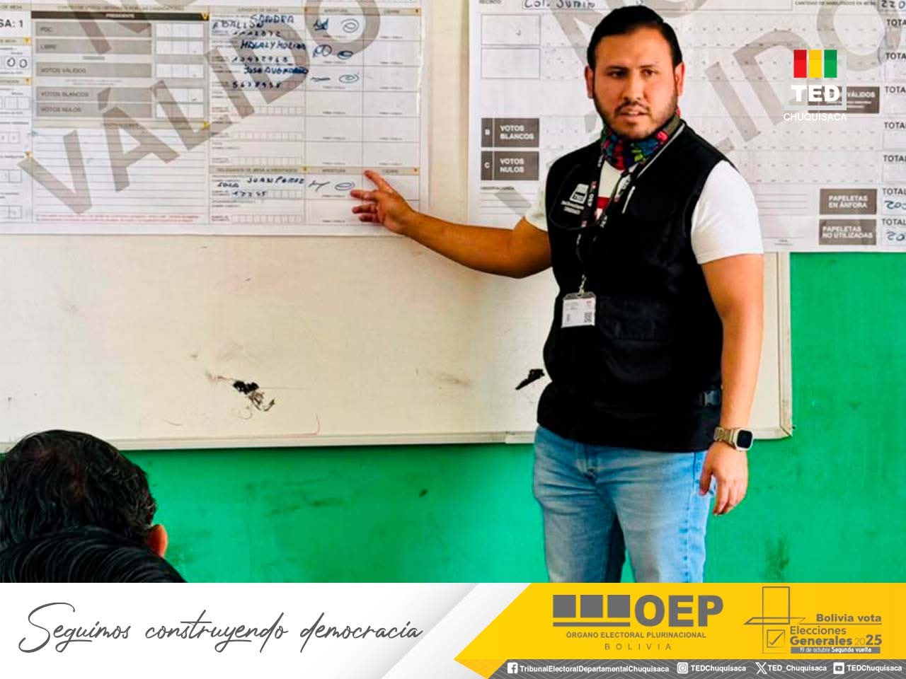 “Llamamos a todos los jurados electorales a acudir a sus capacitaciones para recibir toda la información necesaria para cumplir con su labor. Ellos serán la máxima autoridad de la mesa de sufragio el día de las elecciones y es importante que sean capacitados”, afirmó el presidente del TED Chuquisaca, Mauricio del Río.