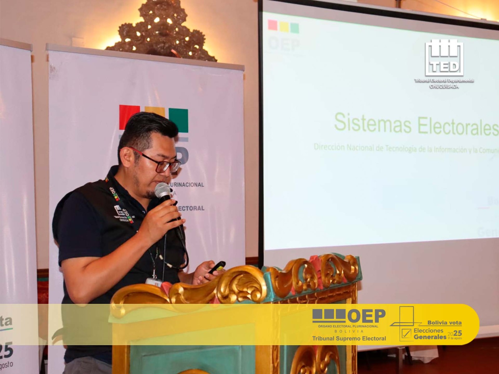 A su turno, el secretario de Cámara del TED Chuquisaca, Augusto Valda, se refirió al rol de las organizaciones políticas y alianzas durante el proceso electoral y exhortó a la ciudadanía a participar activamente en la jornada de votación.