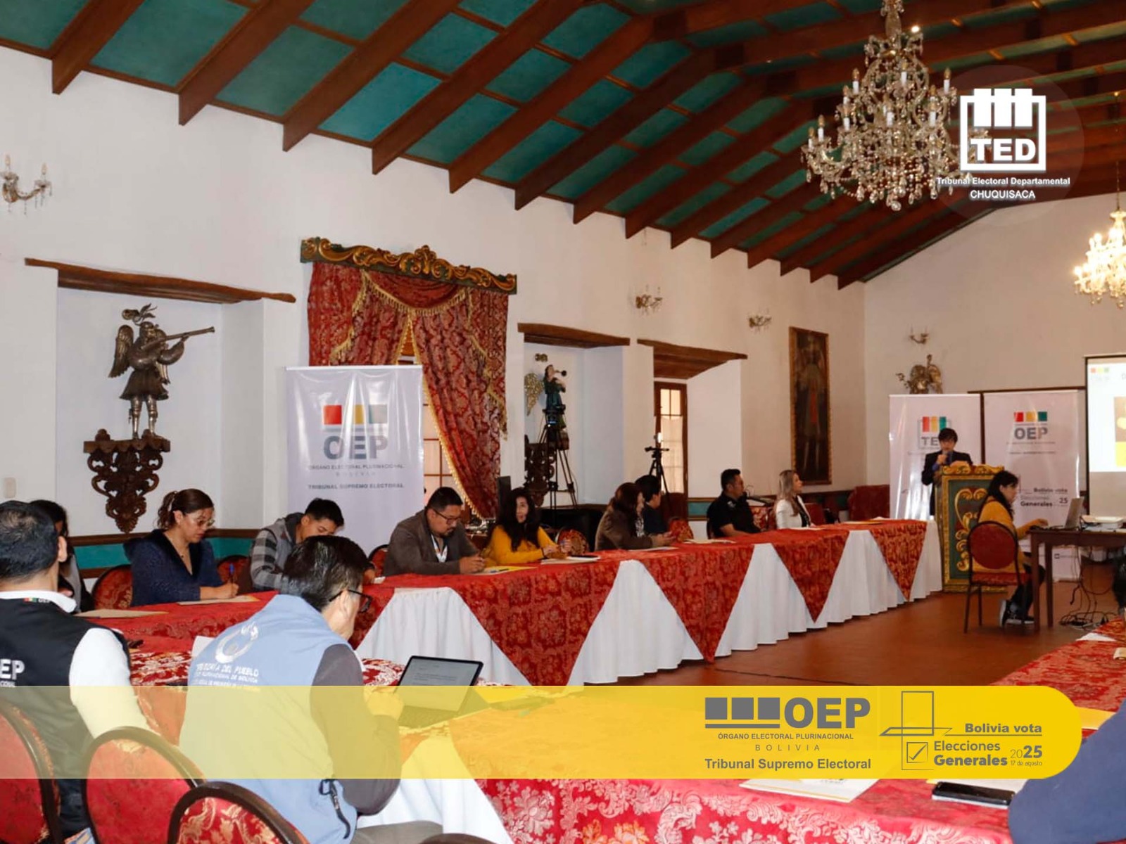 Con la participación de representantes de instituciones públicas, organizaciones políticas y de la sociedad civil, el Tribunal Electoral Departamental (TED) de Chuquisaca, a través del Servicio Intercultural de Fortalecimiento Democrático (Sifde), realizó este lunes 28 de julio el Segundo Diálogo Departamental Electoral, centrado en el funcionamiento del Sistema de Resultados Electorales Preliminares (Sirepre) y del Sistema de Cómputo Oficial.