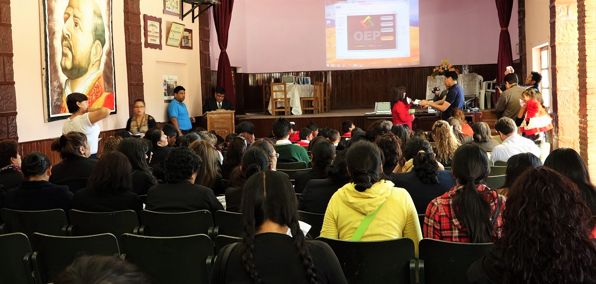 La unidad Educativa Loyola de Fe y Alegría, junto al Tribunal Electoral Departamental (TED) de Chuquisaca, presentó este miércoles el videojuego “Yo juego en la Democracia”, destinado a niños y niñas del nivel educativo primario, para que puedan conocer y aprender sobre los valores democráticos que se ejercen en Bolivia.