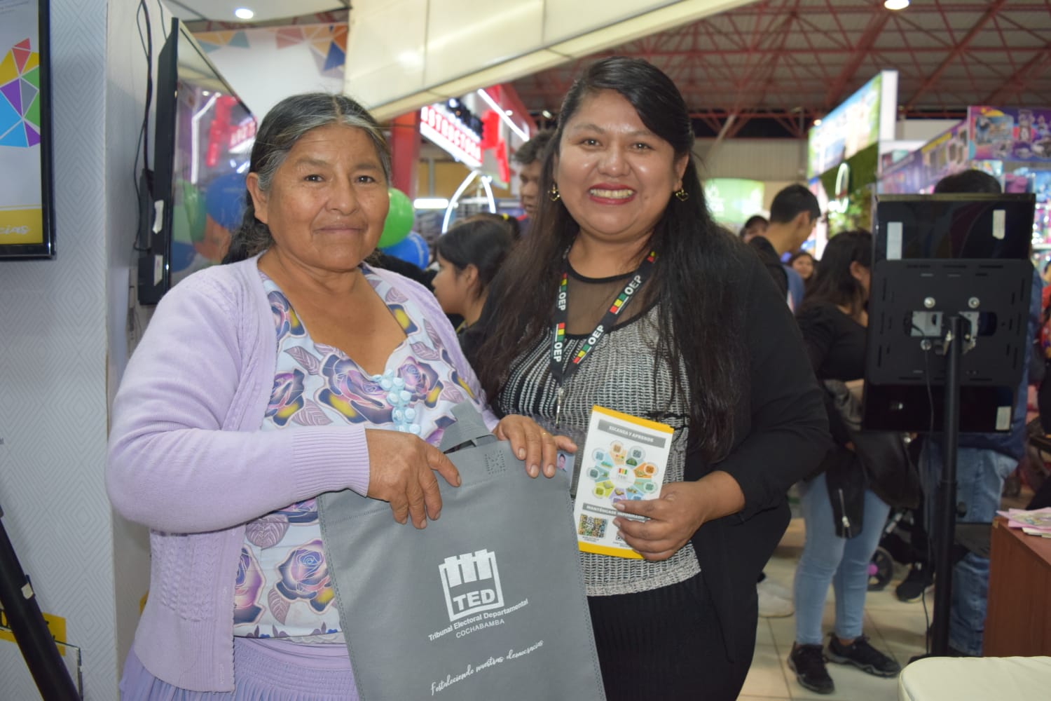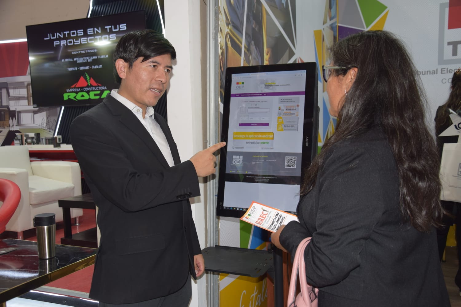 El Órgano Electoral Plurinacional (OEP) ofrece servicios registrales al público asistente a la Feria Exposición Internacional de Cochabamba (Fexco), que se realiza del 25 de abril al 5 de mayo de 2024 en la ciudad del valle.