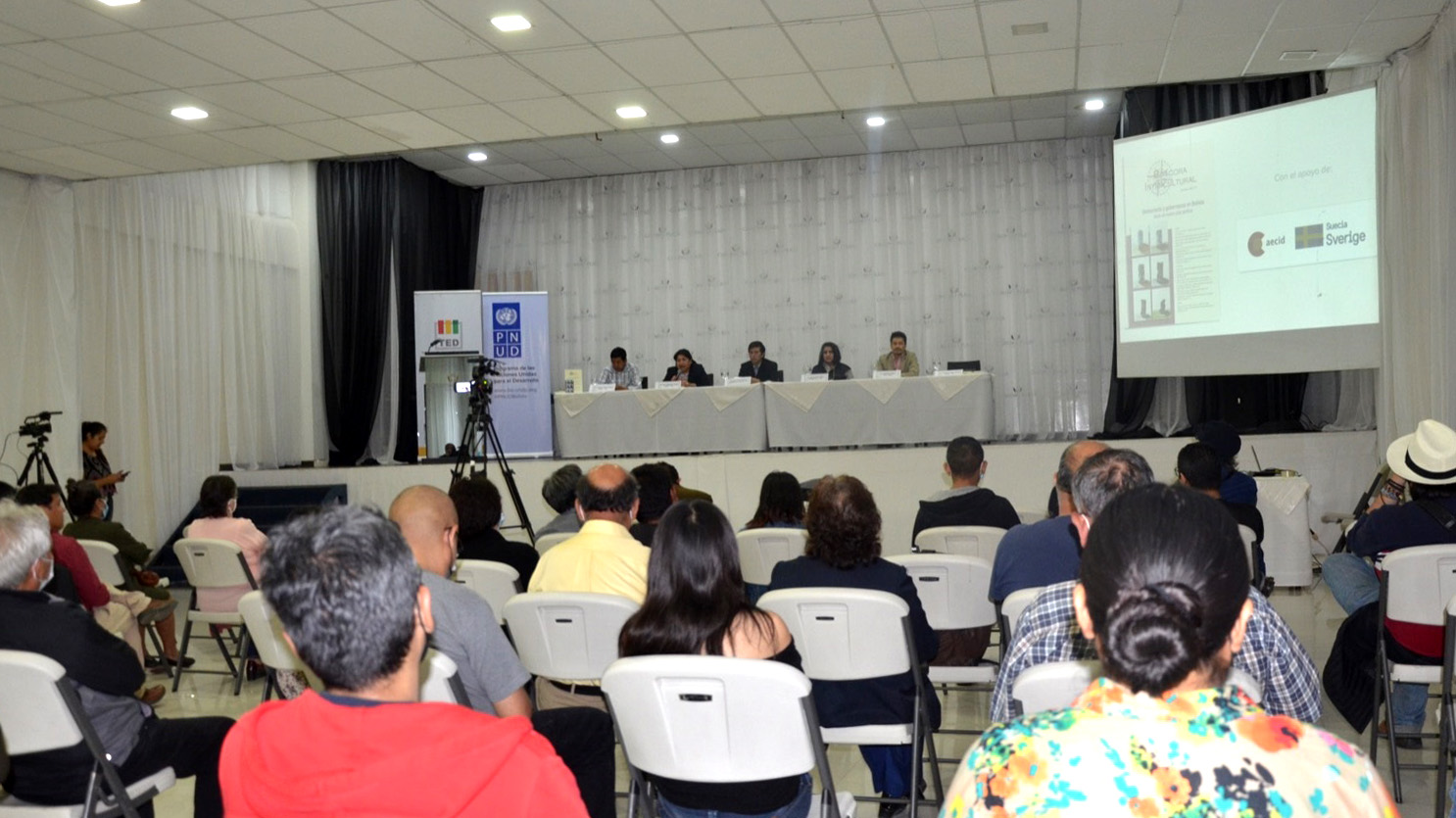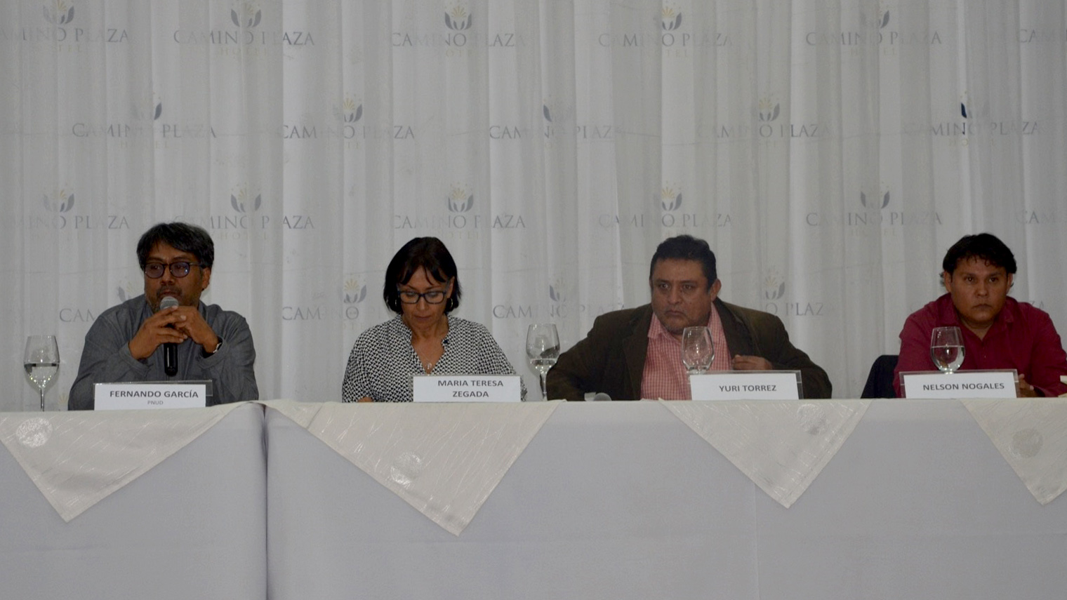 Concluido el acto de inauguración, se instaló un panel de análisis temático moderado por Fernando García (PNUD), en el que participaron los articulistas Yuri Torrez y María Teresa Zegada, con el comentario de Nelson Morales.