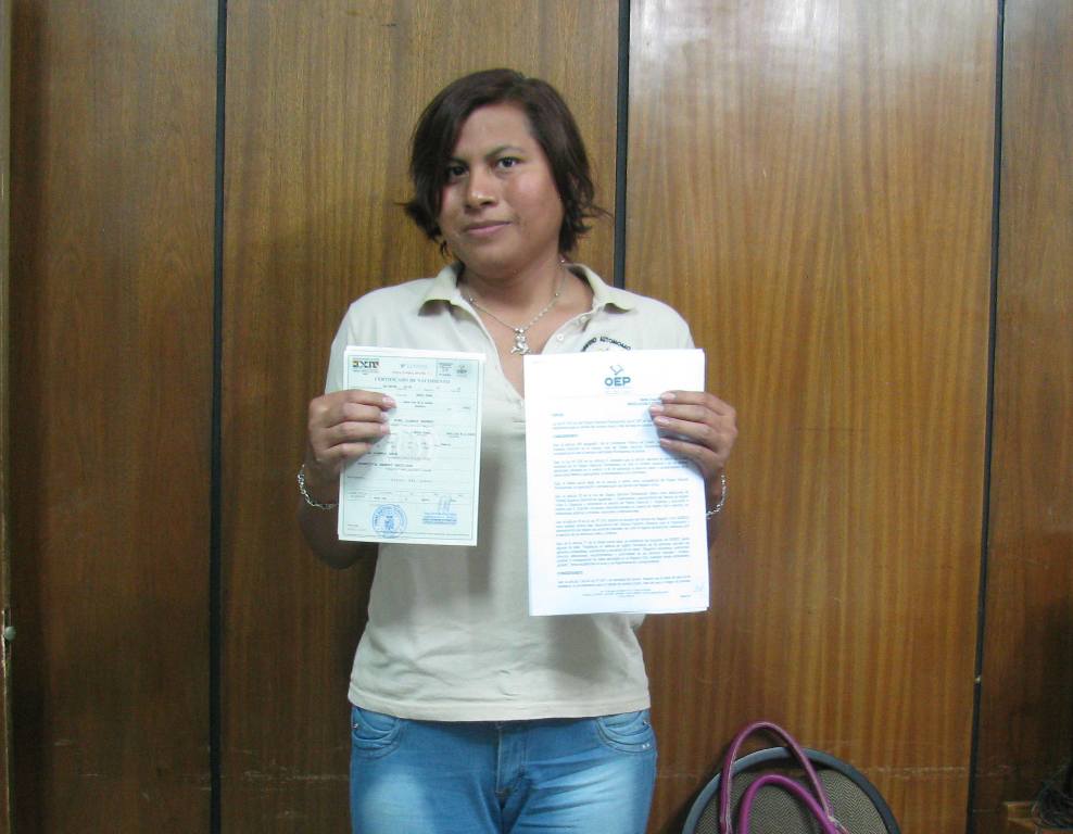 “Estoy conforme ya que es la última etapa del trámite para recoger el nuevo Certificado de Nacimiento del SERECI”, señaló una de las beneficiadas en Cochabamba.