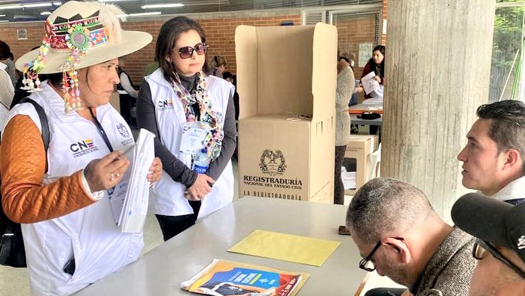 El vicepresidente del Tribunal Supremo Electoral (TSE), Francisco Vargas, y la vocal Nelly Arista formaron parte de las delegaciones de observación de la Unión Interamericana de Organismos Electorales (Uniore) y la Asociación de Magistradas Electorales de las Américas (AMEA), respectivamente, para acompañar las elecciones territoriales de la República de Colombia.