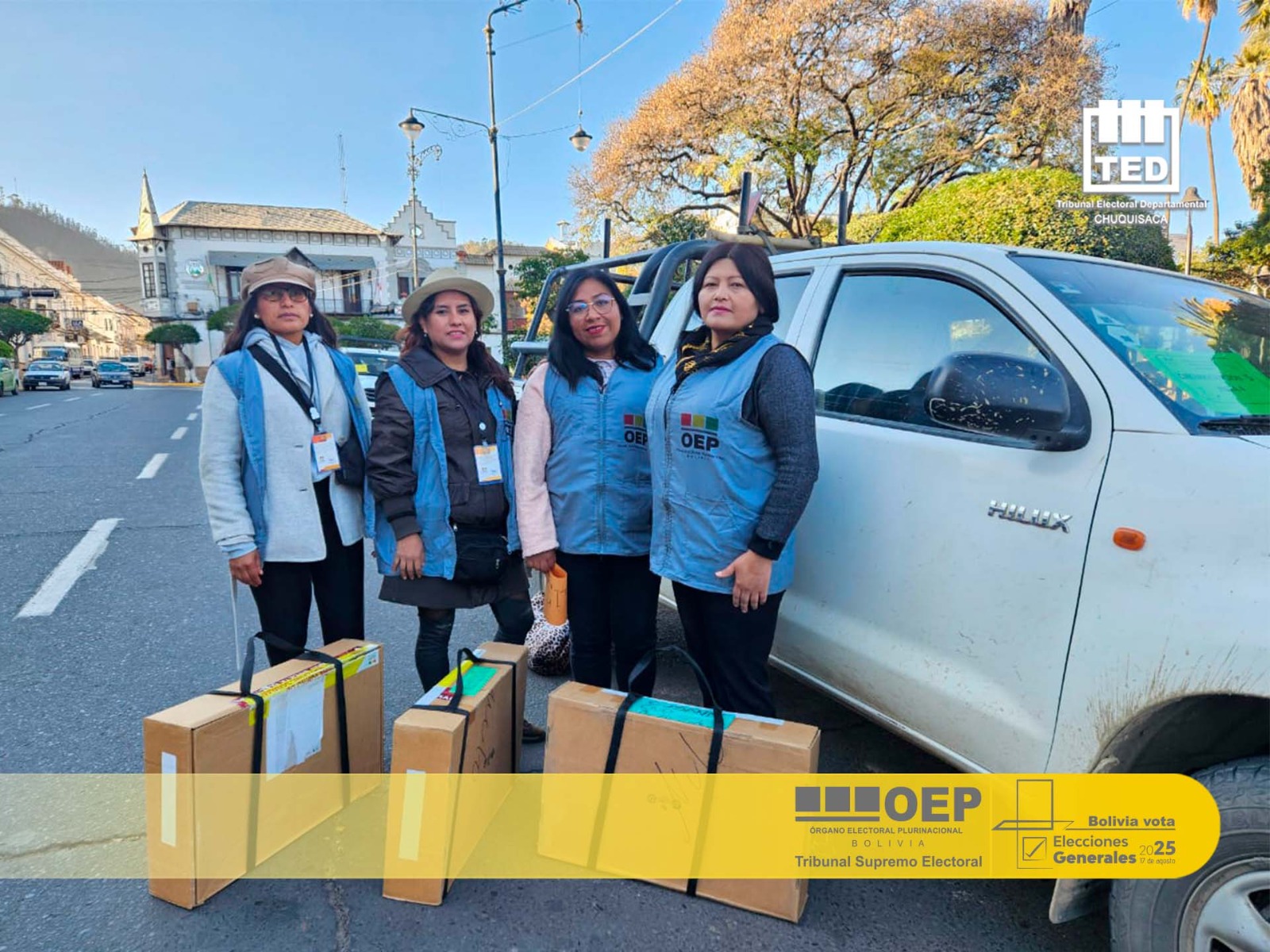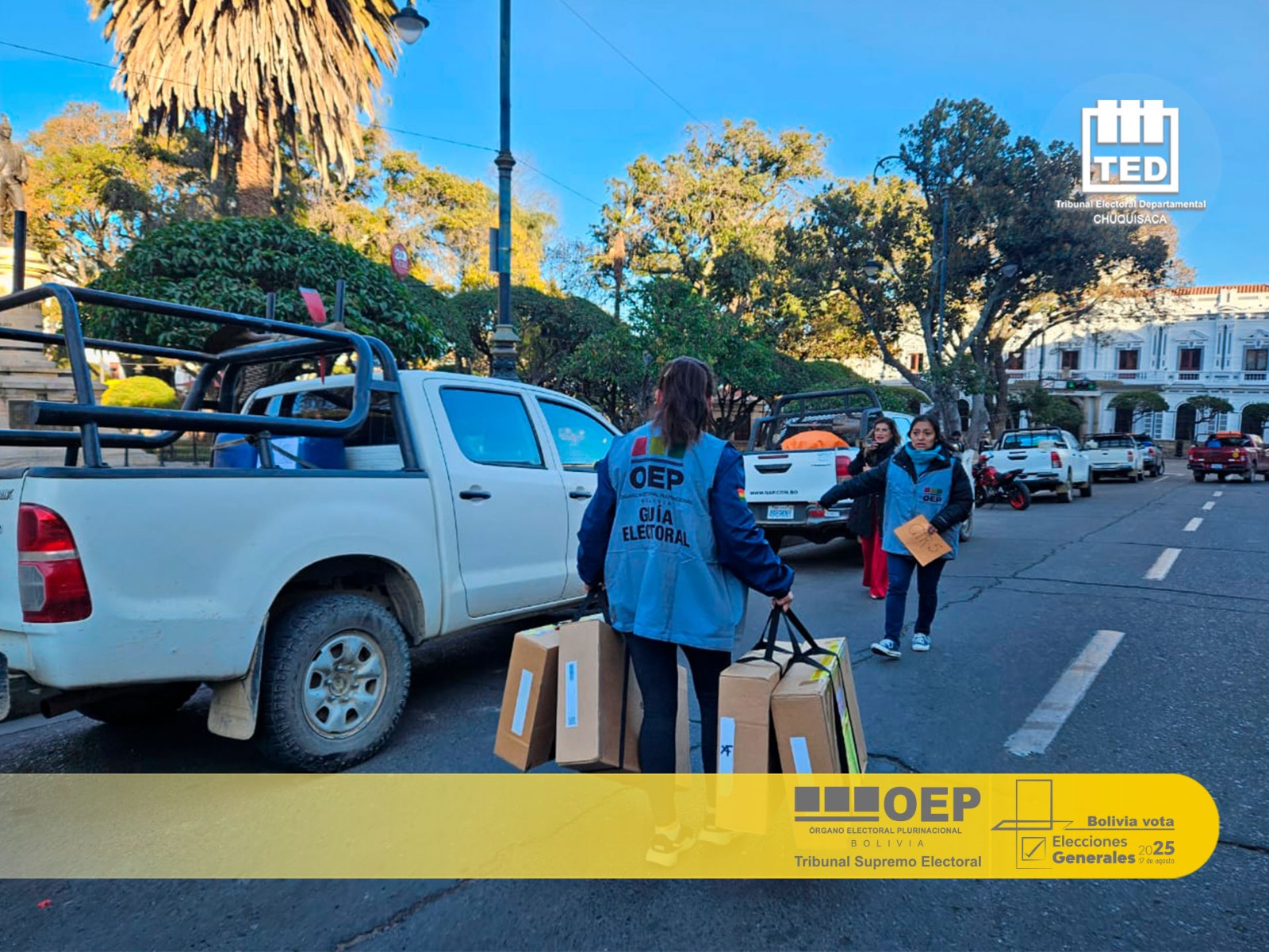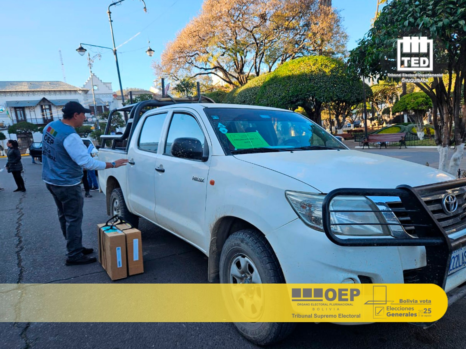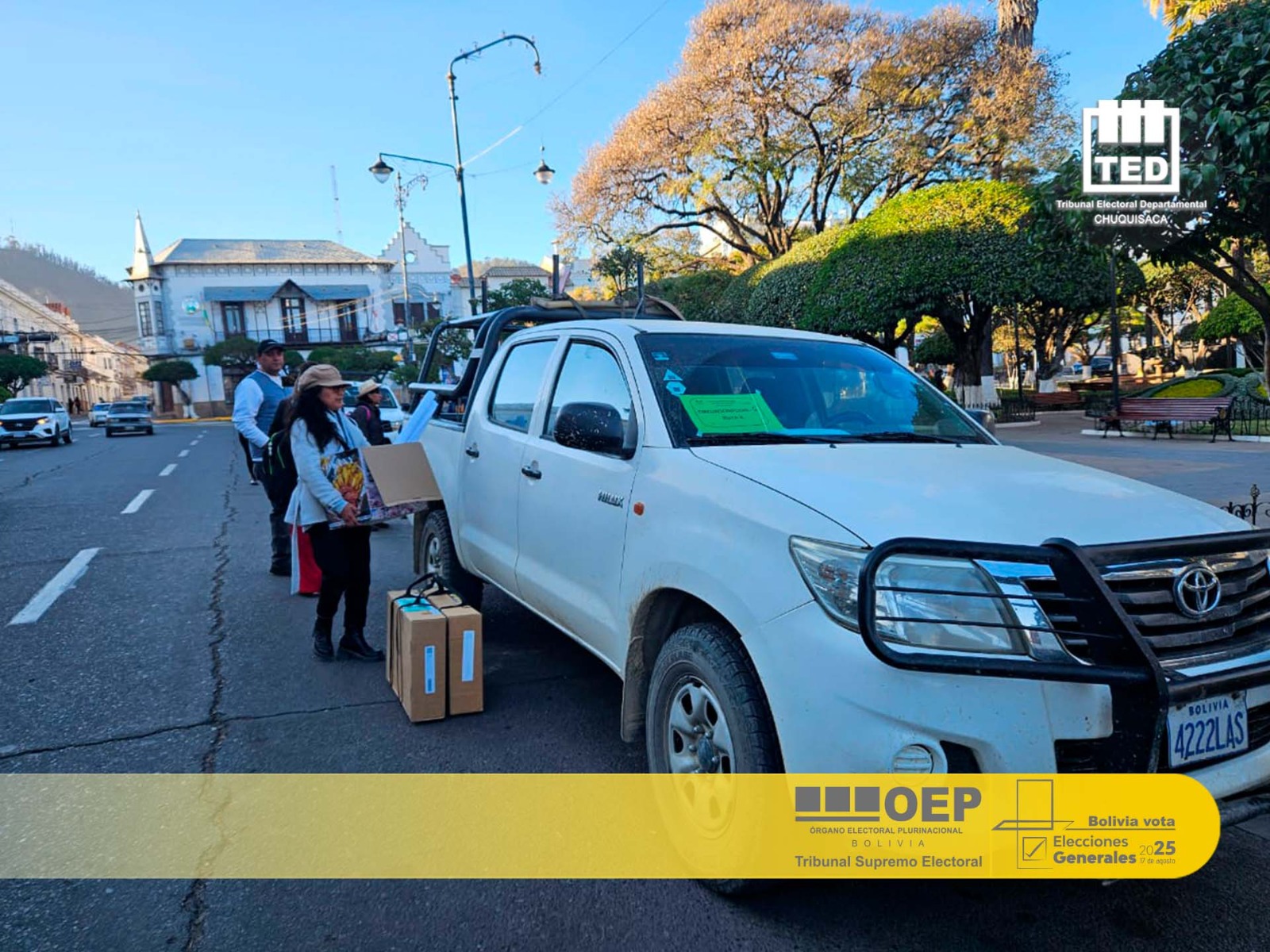 Las comisiones partieron a las 8:00 de la mañana desde la plaza 25 de Mayo de la ciudad de Sucre. “Llevan todo el material necesario, como cartillas de jurados, acta electoral, hojas de trabajo y material de apoyo sobre el contenido de la maleta electoral”, informó el responsable de Coordinación del Sifde Chuquisaca, Marcelo Morales.