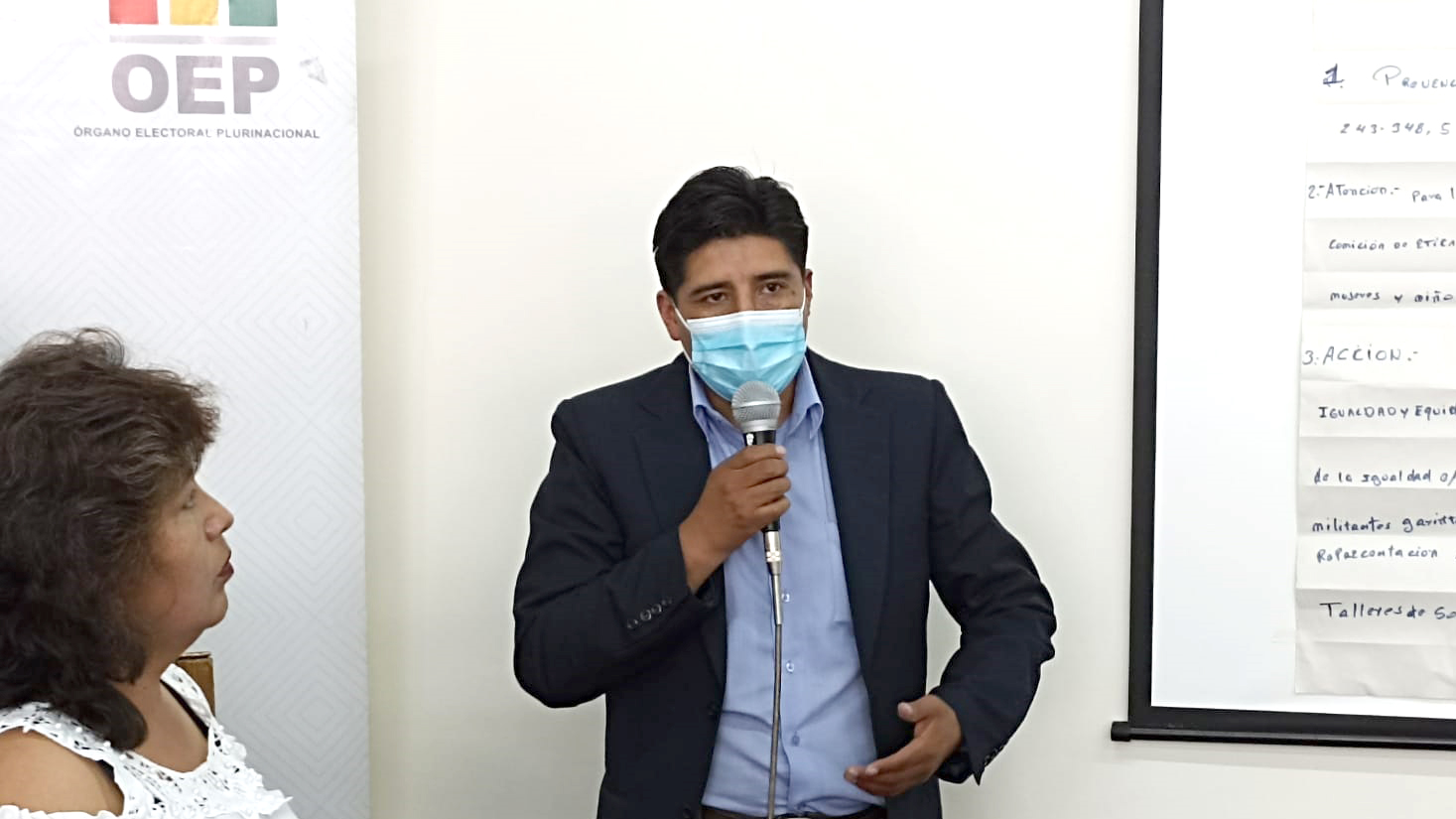 El presidente del TED La Paz, Sabino Chávez Mamani, destacó la importancia de este tipo de eventos, que permiten informar, socializar y debatir entre las organizaciones políticas, sobre esta temática, con el fin de aplicar desde sus Estatutos Orgánicos y fortalecer su democracia interna.