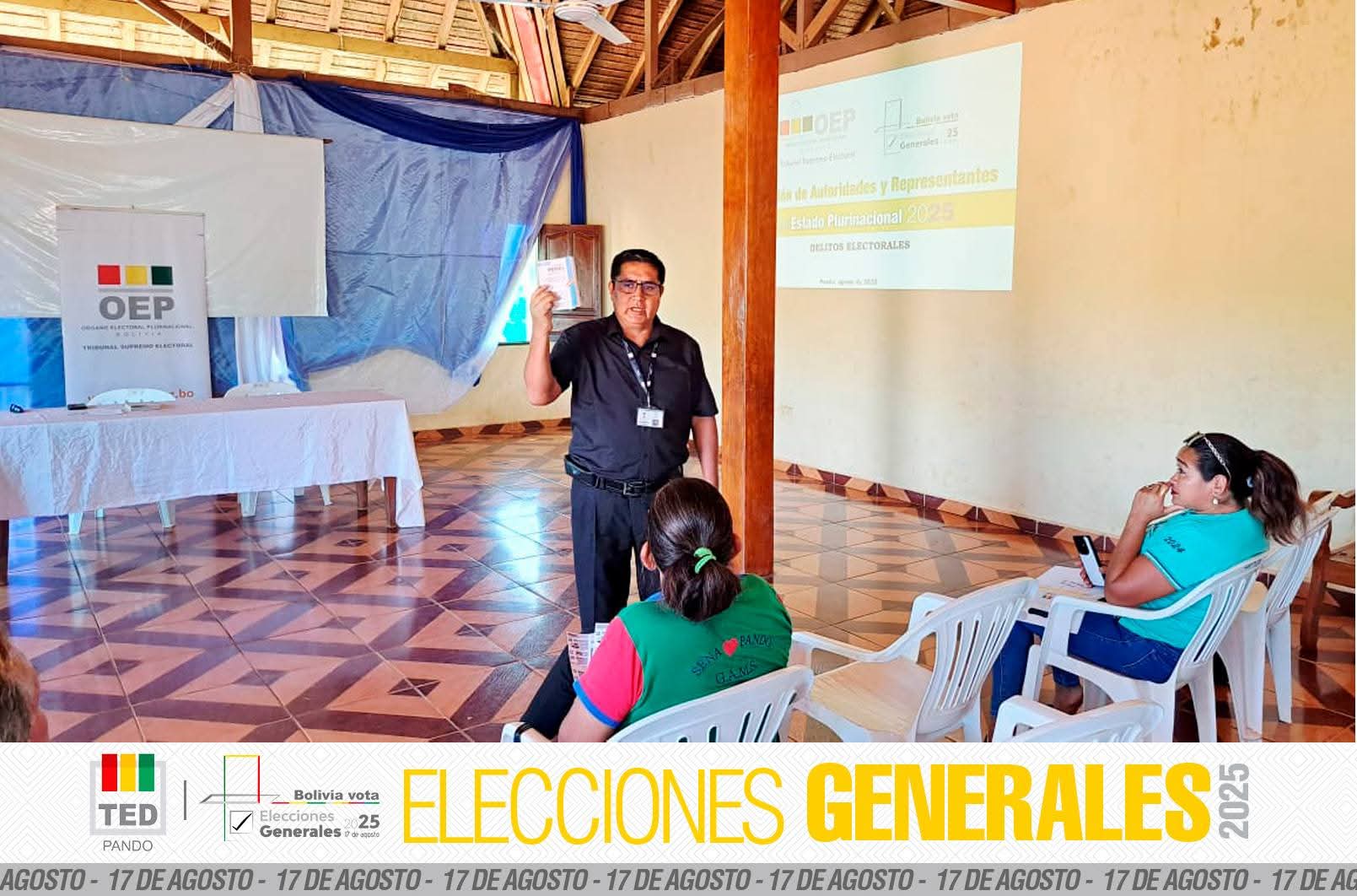 Con miras a garantizar unas elecciones transparentes y seguras, el Tribunal Electoral Departamental (TED) de Pando inició un plan preventivo basado en talleres sobre delitos electorales, acoso y violencia política contra las mujeres, en los municipios de El Sena y Cobija.