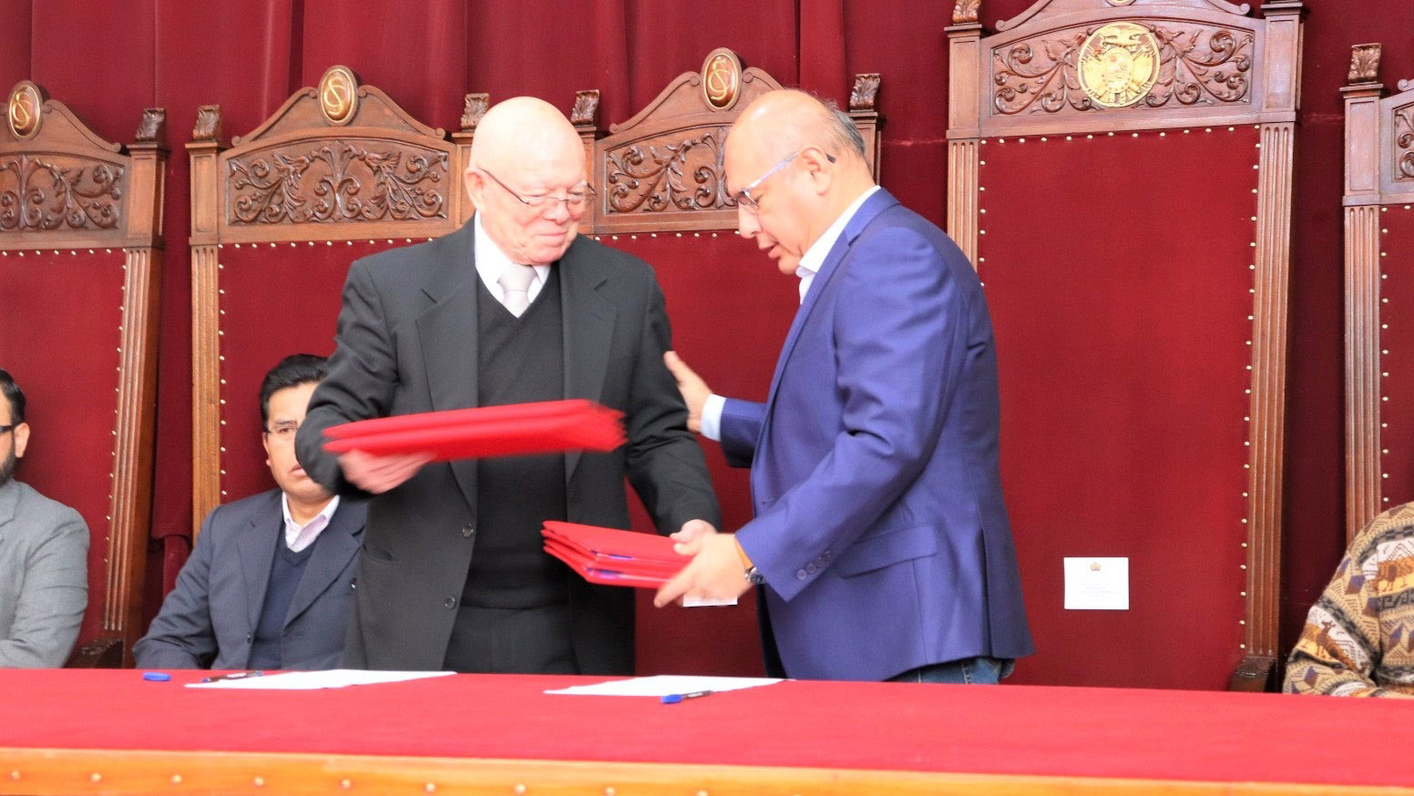 En el acto de suscripción del convenio estuvo presente el vocal del TSE Tahuichi Tahuichi, además del presidente del Tribunal Electoral Departamental de Chuquisaca, Edil Martínez, sus colegas vocales y diversos representantes del Órgano Judicial.