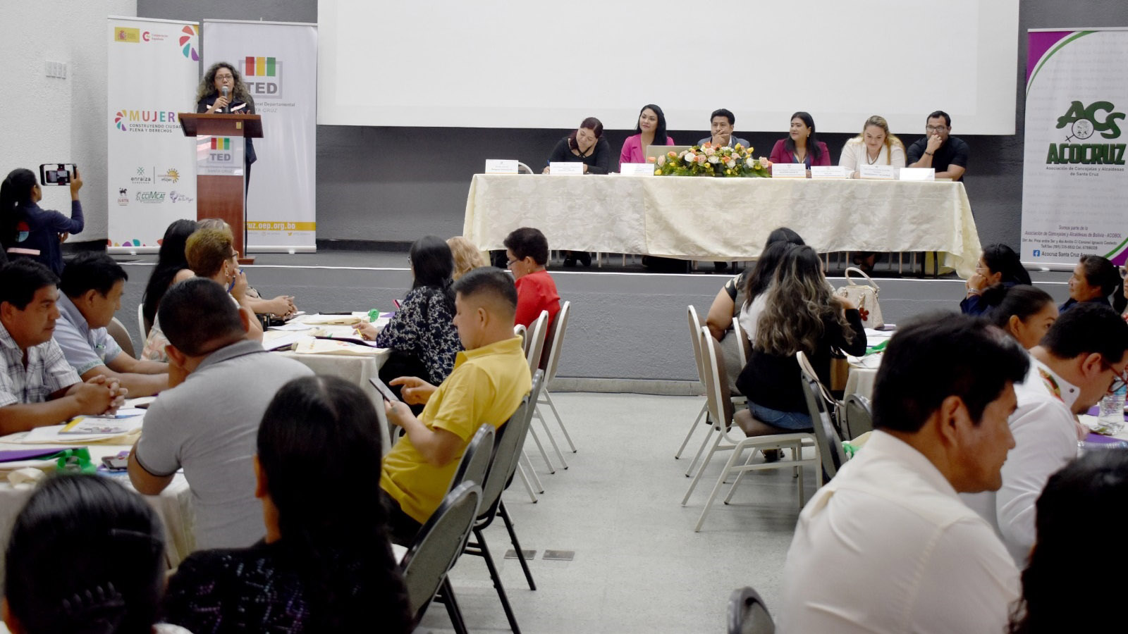 Participaron 112 autoridades de los 54 municipios del departamento de Santa Cruz, entre ellas alcaldesas, concejalas, concejales y asesores municipales.