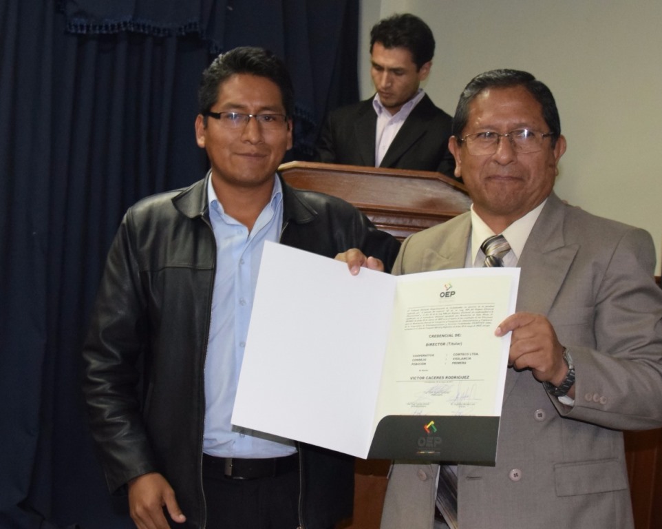 Asimismo, para el Consejo de Vigilancia, Víctor Cáceres, Christian Knaud y María Esmeralda Tito recibieron las credenciales de titulares; y Gabriela Melendres, Ernesto Gandarillas y Lucía Yucra recibieron las credenciales como suplentes.