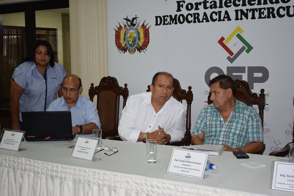 El encuentro se realizó en el marco del acuerdo interinstitucional entre el TED y el FEDECAAS y contó con la participación del Presidente del TED Santa Cruz, Eulogio Núñez Aramayo; la Vicepresidenta del TED Sandra Kettels Vaca; el Vocal responsable de Geografía Electoral, Gober López; el Presidente de la FEDECAAS, Víctor Hugo Ortuño; y el presidente del Consejo de Vigilancia de la Federación, Juanito Vaca.