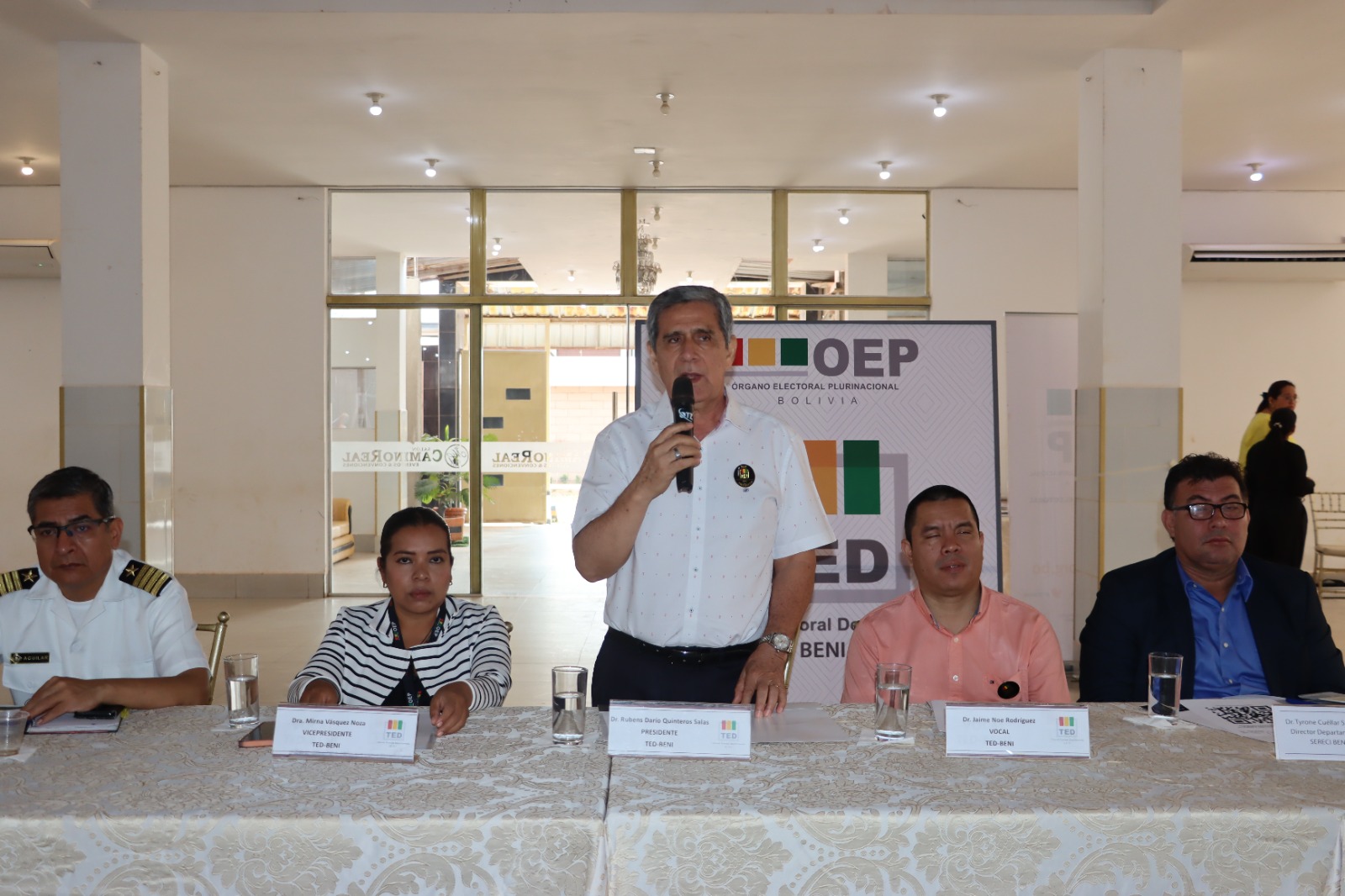 Durante el encuentro, el TED Beni presentó el Sistema de Transmisión y Publicación de Resultados Preliminares, así como su componente tecnológico, el Sistema de Resultados Electorales Preliminares (Sirepre), diseñado para la publicación rápida y transparente de los resultados preliminares del proceso electoral.