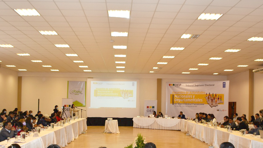 Se desarrolló exitosamente la primera jornada de trabajo del “Encuentro de autoridades nacionales y departamentales del Órgano Electoral Plurinacional (OEP)” celebrado en el departamento de Cochabamba con el respaldo del Programa de Naciones Unidas para el Desarrollo. (PNUD).