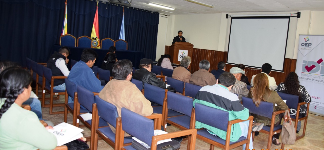 El Instituto para la Democracia Intercultural (IDI), dependiente del Órgano Electoral Plurinacional (OEP), comenzó este jueves 2 de agosto sus actividades en Cochabamba, con la realización del curso “Participación y Control Social para el Fortalecimiento de la Democracia Intercultural”, el cual contó con la participación de 19 representantes cuatro partidos políticos del ámbito nacional y cinco agrupaciones ciudadanas del departamento.