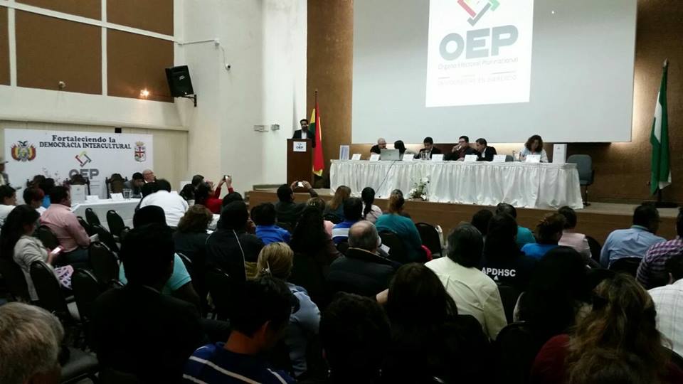 La presentación se realizó este 11 de abril en la ciudad de Santa Cruz y contó con la participación de los vocales del Tribunal Supremo Electoral (TSE), José Luis Exeni, Dunia Sandoval e Idelfonso Mamani; el presidente del TED Santa Cruz, Eulogio Núñez y el decano de la Facultad de Ciencias Jurídicas, Políticas y Sociales de la Universidad Autónoma Gabriel René Moreno (UAGRM), Manfredo Menacho Aguilar; y un panel de diálogo conformado por Luis Andia, docente de la Facultad de Ciencias Jurídicas, Políticas y Sociales de la UAGRM; Chiaki Kinjo de la Fundación AVINA Bolivia y José Luis Gálvez, presidente de Equipos Mori.