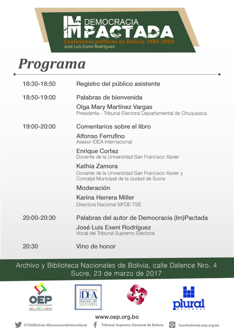 El OEP presentará este jueves en Sucre el libro “Democracia Impactada”