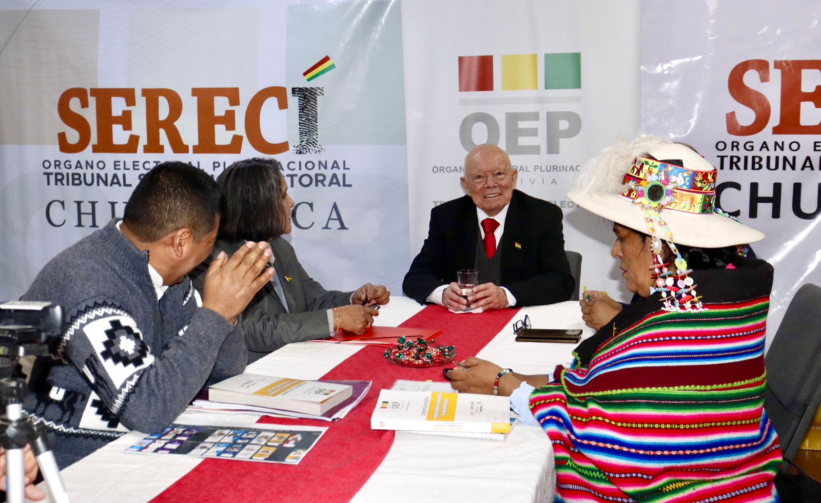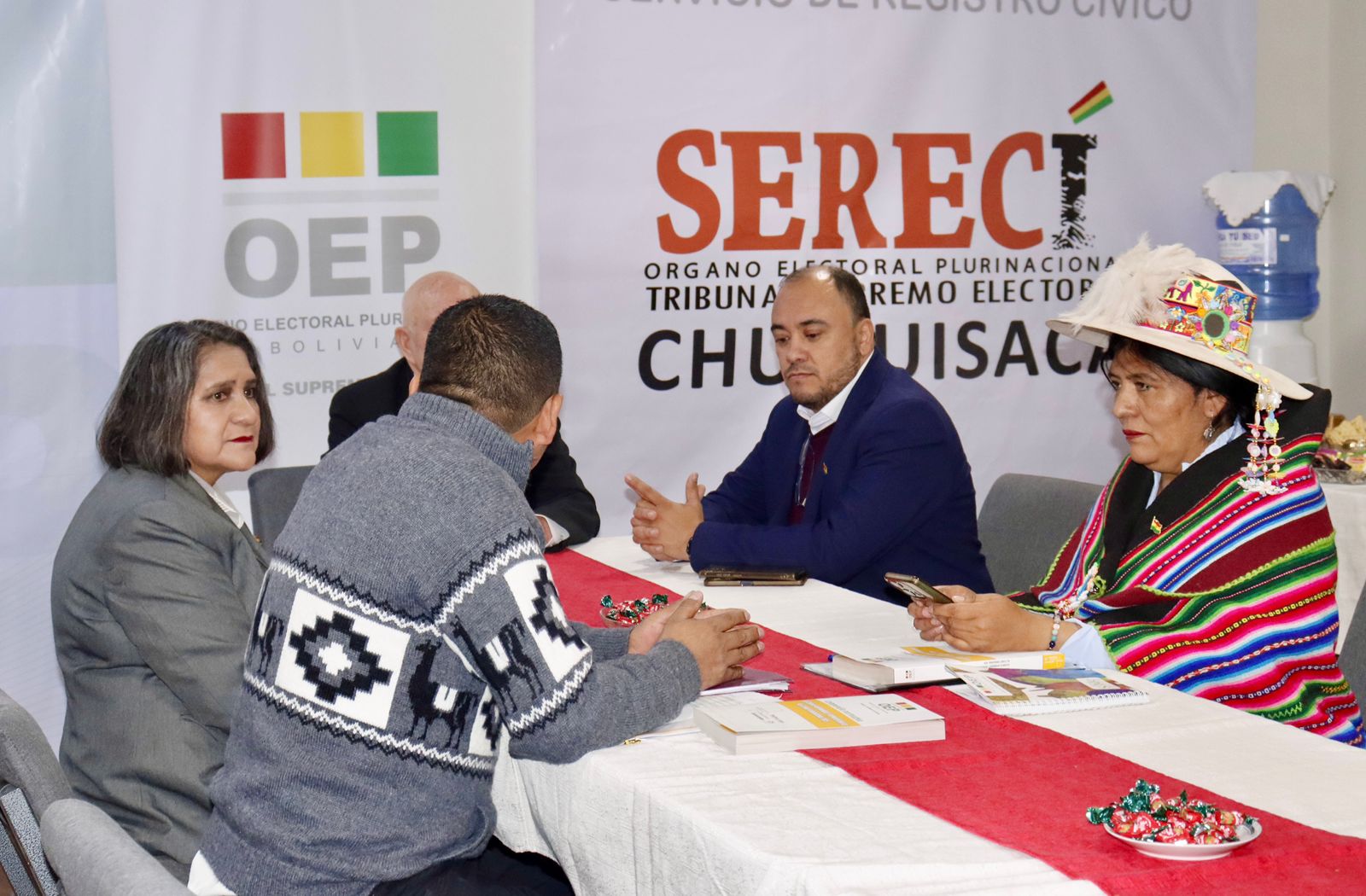 “Como una forma de sumarse a los festejos y de rendir homenaje al Bicentenario, la Sala Plena del TSE acordó realizar una sesión en Sucre”, destacó el presidente del TSE, Oscar Hassenteufel, al comenzar la reunión que se llevó a cabo en instalaciones del Servicio de Registro Cívico (Serecí) de Chuquisaca.