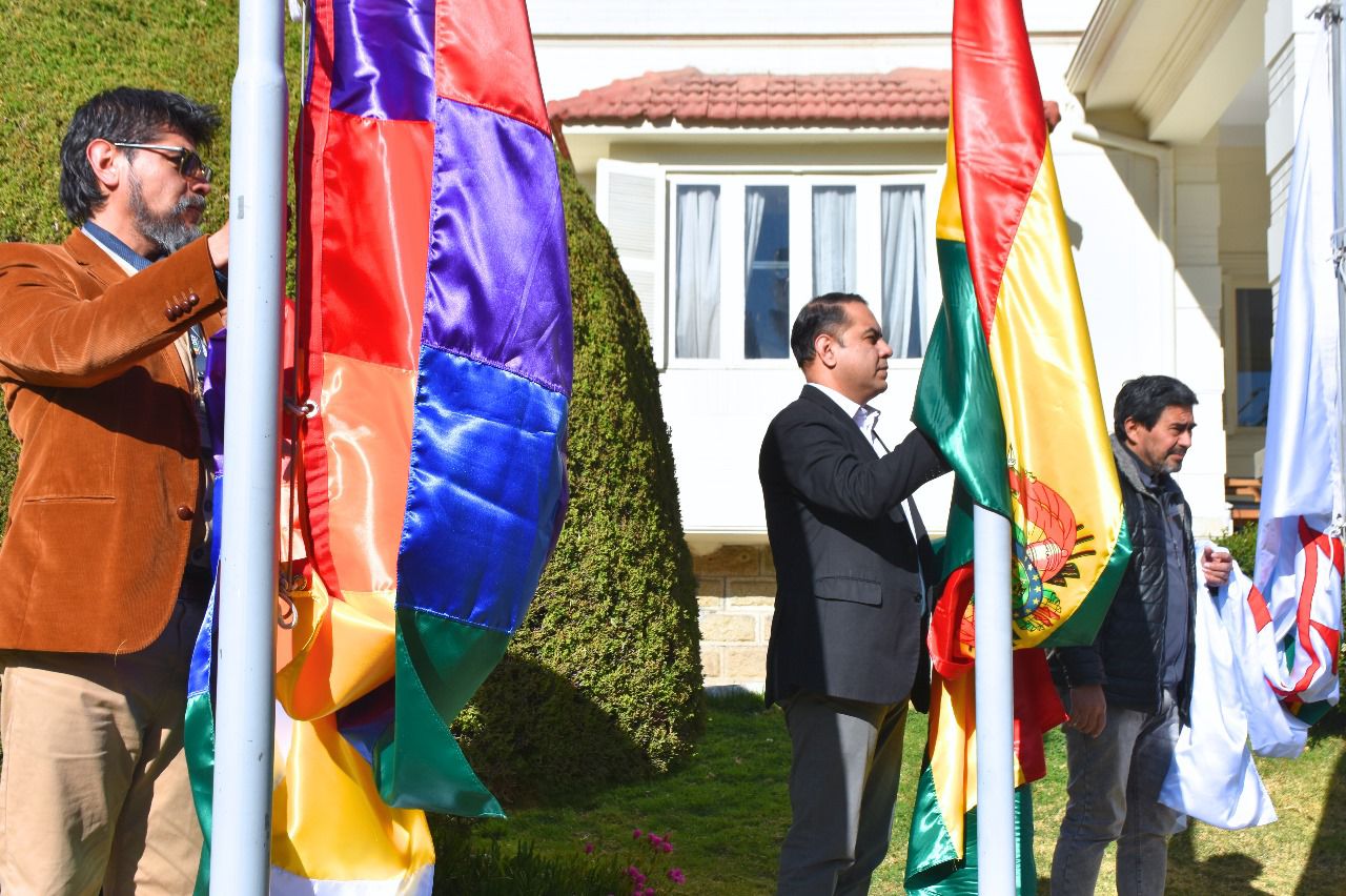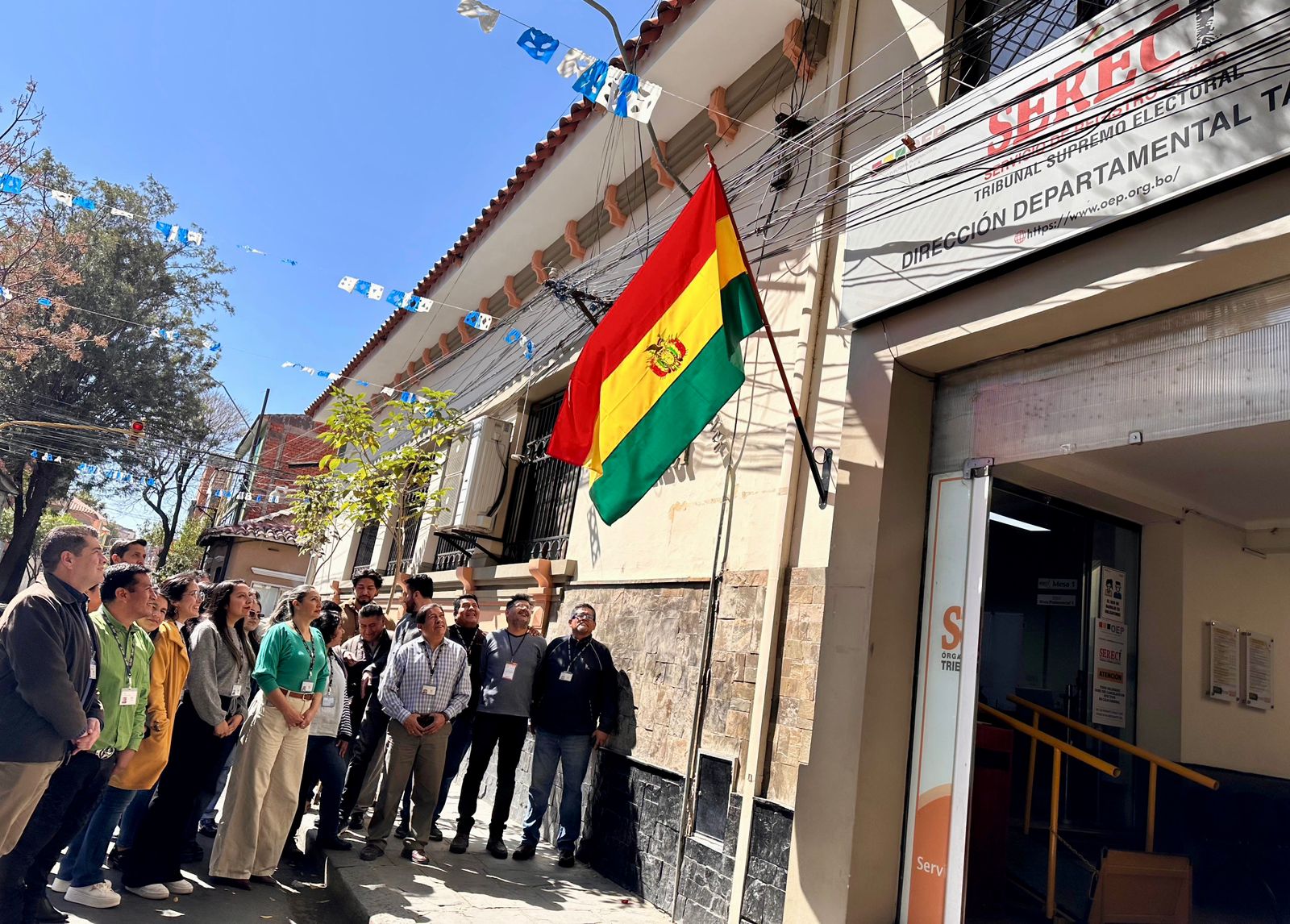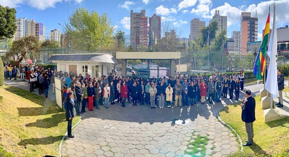 Asimismo, en los nueve departamentos, el personal del TSE y de las direcciones departamentales del Serecí realizó la iza de la bandera tricolor, entonando el Himno Nacional, simultáneamente, como muestra de homenaje y salutación al Bicentenario de la independencia.