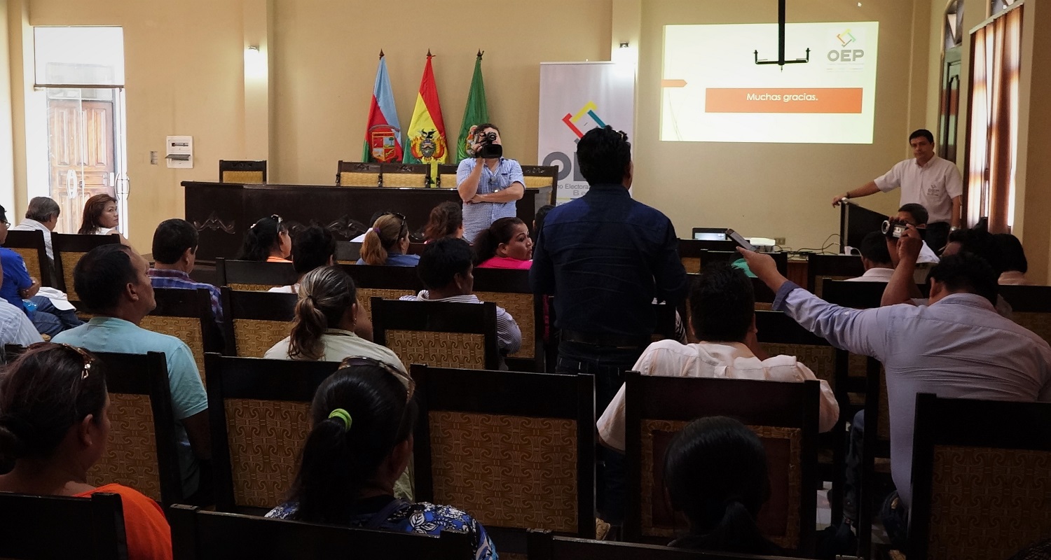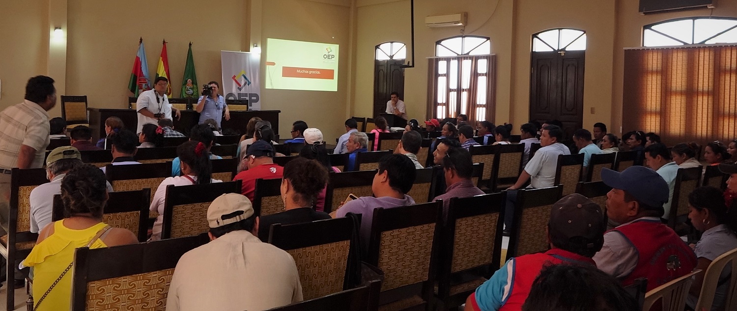 Coimbra dio a conocer este y otros datos durante el taller de capacitación con las organizaciones sociales del municipio de Riberalta, sobre el Reglamento de Condiciones Administrativas para los Procesos de Revocatoria de Mandato de Autoridades Electas por Voto Popular, que se desarrolló este lunes 5 de marzo y que contó con la participación de las autoridades municipales, miembros de las organizaciones sociales y del control social, medios de comunicación y promotores de las iniciativas ciudadanas en el municipio.