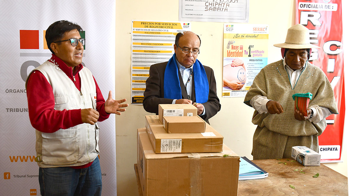 Las autoridades dotaron de los equipos de computación para el trabajo del nuevo Oficial de Registro Civil, para brindar un servicio a la población de la nación milenaria de Uru Chipaya, que habita en el occidente del departamento de Oruro.