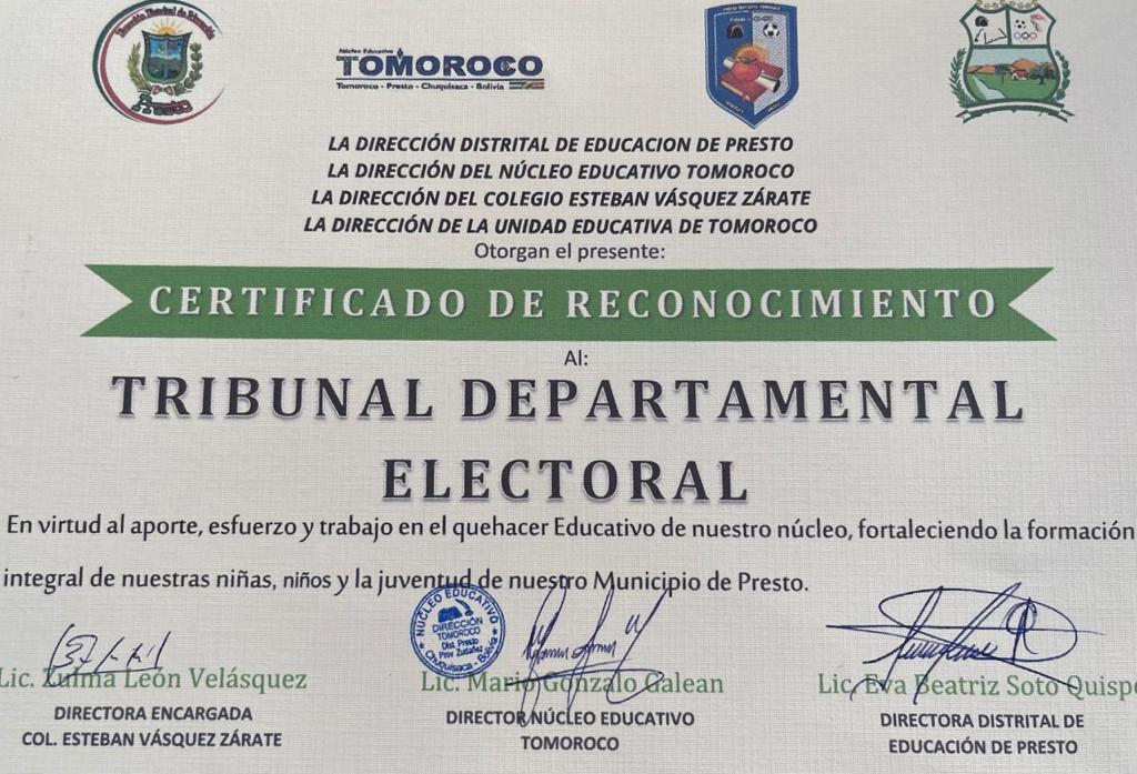 HomeEl TED Chuquisaca entrega credenciales a representantes de 27 gobiernos estudiantes del municipio de Presto certi1-ch