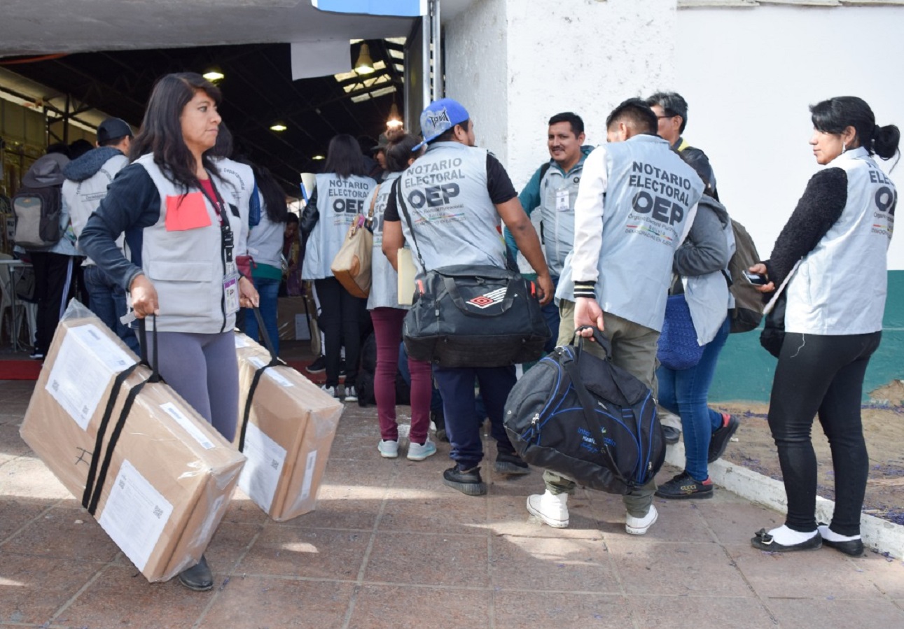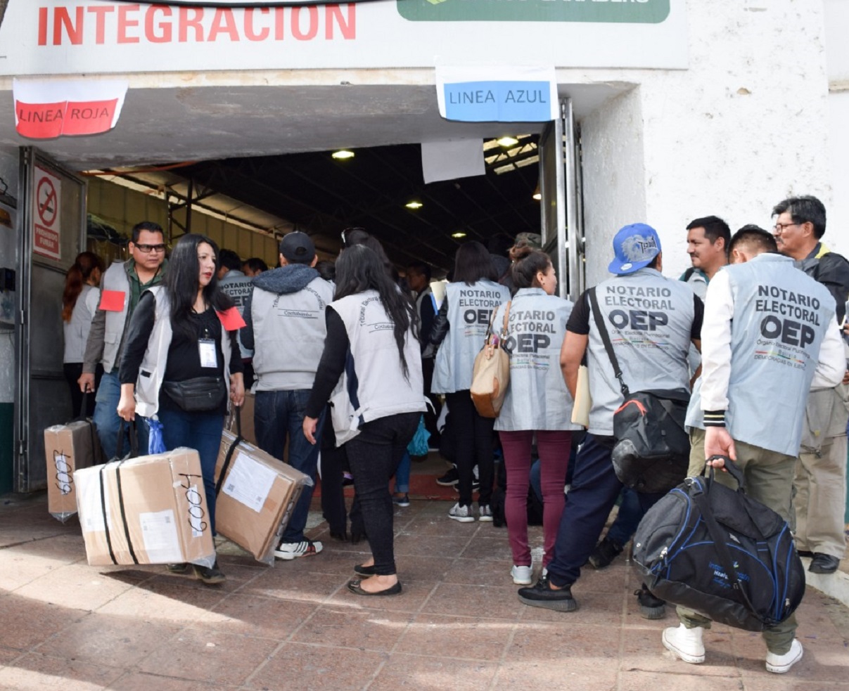 El presidente del TED Cochabamba, Martín Montaño, informó que 6.134 maletas electorales, para similar número de mesas de sufragio, son entregadas a las y los y notarios de este departamento, quienes las transportarán hasta los recintos electorales para la entrega a las juradas y jurados de las mesas de sufragio en la jornada electoral.