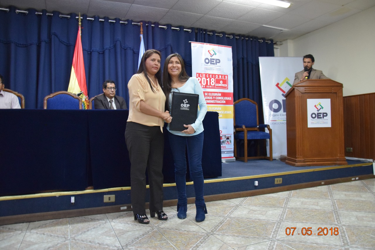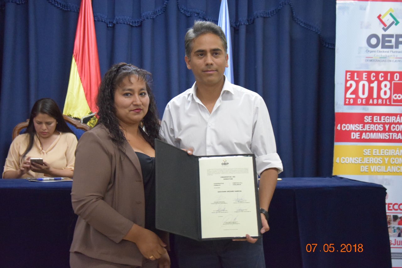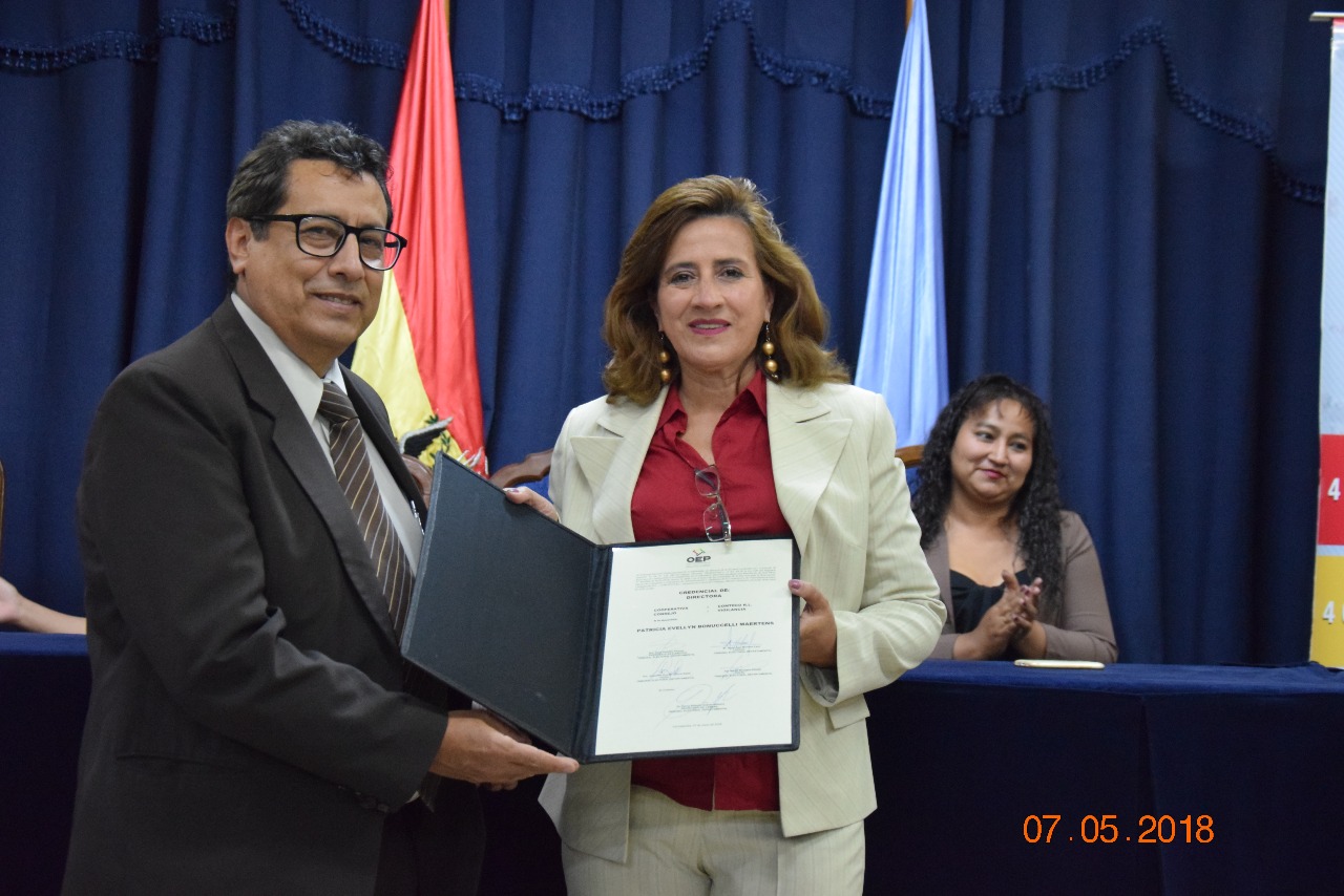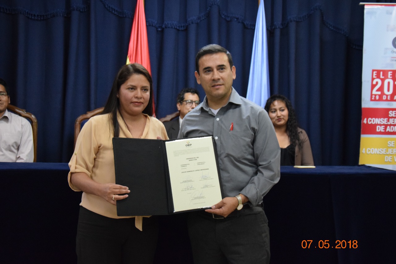 Jenny Esperanza Serrano Flores, Víctor Hugo Franco García, Nadya Marcela Vidaurre Inturias y Karina Shirley Vera Quezada recibieron las credenciales como titulares del Consejo de Administración; mientras que Julio Gonzalo López Antezana, Patricia Evellyn Bonuccelli Maertens, Giovann Arzabe García y Antonio Ferrufino Vilte recibieron las credenciales para el consejo de Vigilancia.