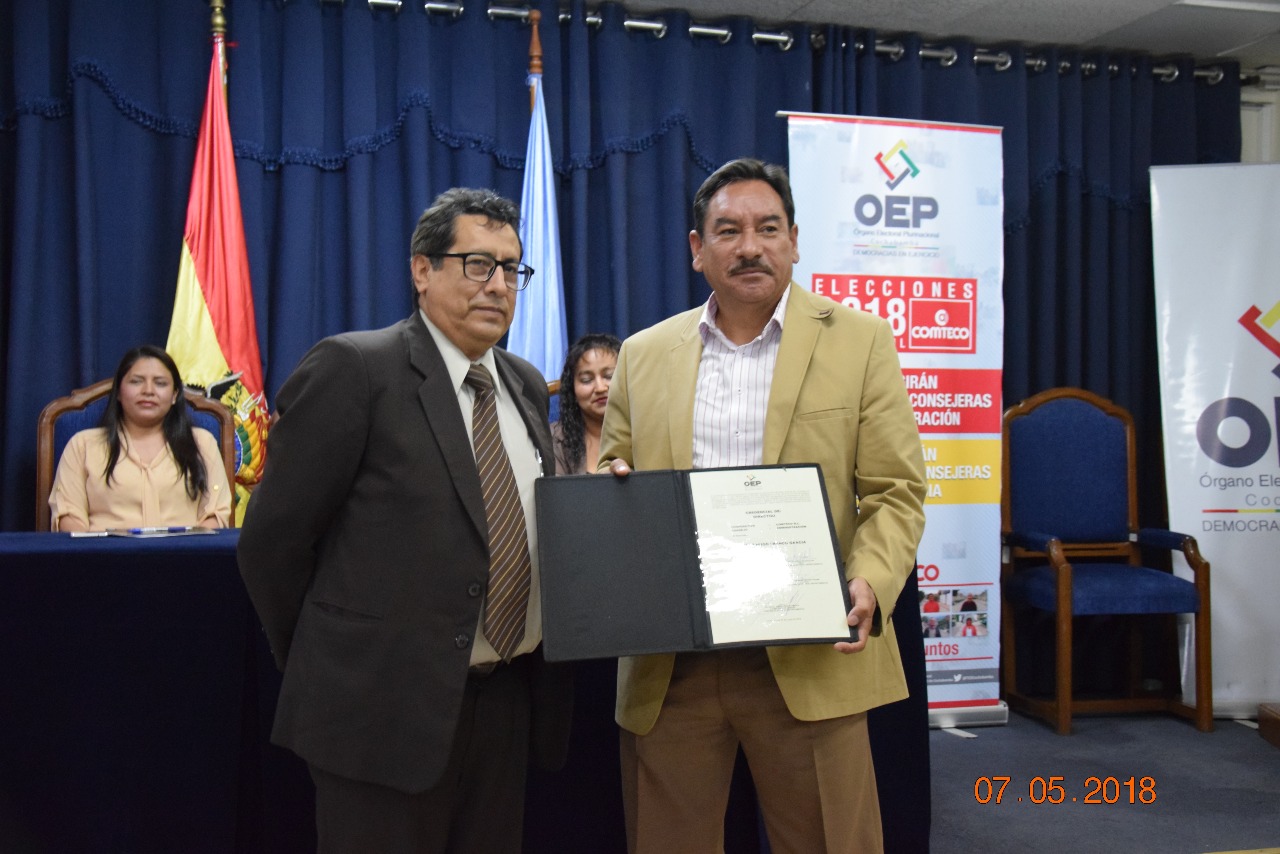 Con la entrega de las credenciales, el TED Cochabamba concluyó el proceso de administración de la elecciones de COMTECO.