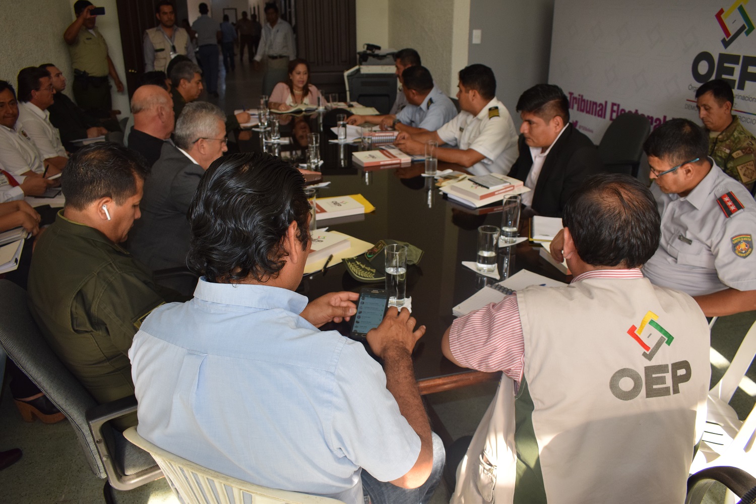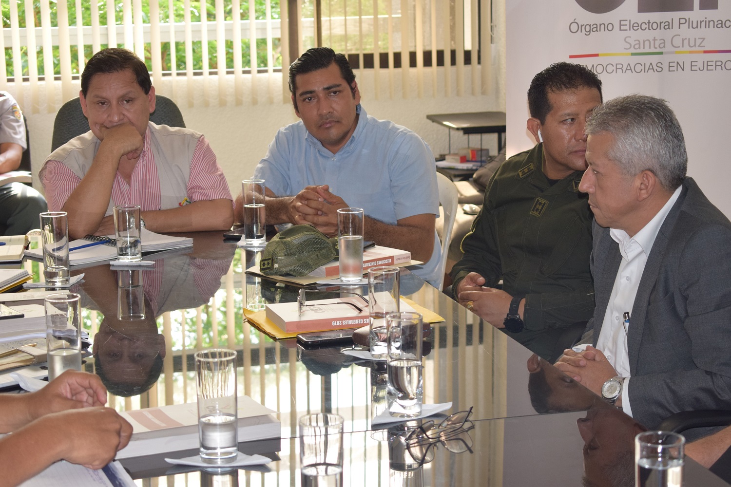 La Sala Plena del Tribunal Electoral Departamental (TED) Santa Cruz se reunió este lunes con las autoridades jurisdiccionales del Ministerio Público, Tribunal Departamental de Justicia (TDJ), Defensoría del Pueblo, el Comando Departamental de la Policía y las Fuerzas Armadas (FFAA), para coordinar los detalles del plan de seguridad que se implementará en el departamento durante las Elecciones Generales del 20 de octubre.