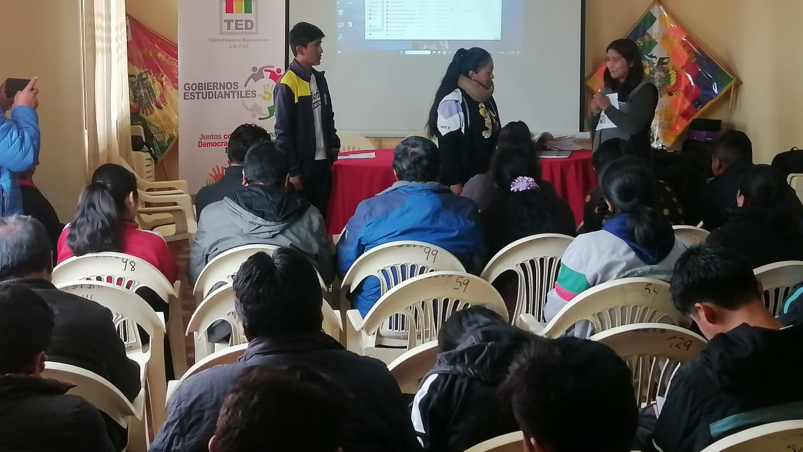 Con miras a la Elección de Gobiernos Estudiantiles del 5 de abril, personal del Tribunal Electoral Departamental (TED) de La Paz visitó el municipio de Copacabana, donde capacitó a más de 40 personas, entre directores y maestros; a su vez, en el municipio de Batallas participaron más de 35 personas, entre estudiantes y maestros. Mientras que el lunes 11 de marzo se capacitó de manera virtual a docentes y estudiantes del municipio de Chulumani.