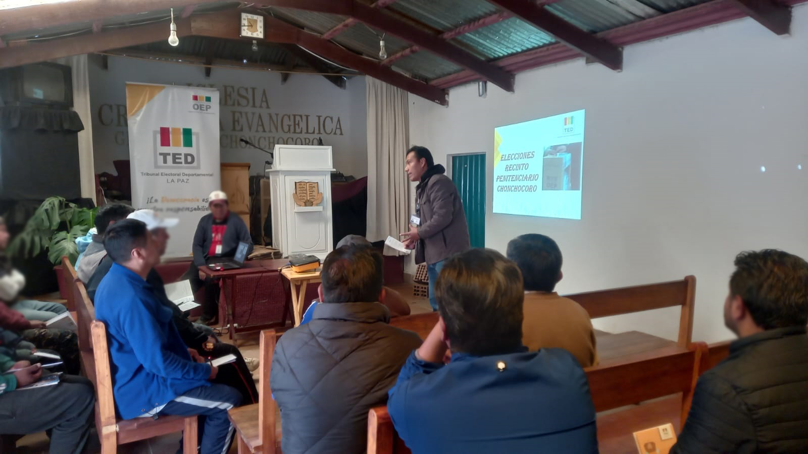 El Tribunal Electoral Departamental (TED) de La Paz, este jueves 31 de agosto, visitó el penal de Chonchocoro para capacitar a los privados de libertad, quienes se alistan para elegir a sus nuevos delegados de Trabajo y Estudio.
